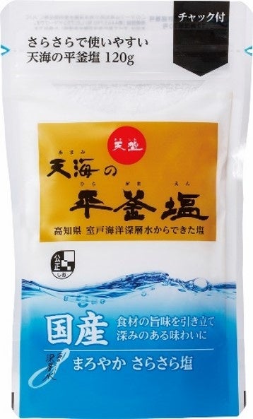 “伝統の平釜”でじっくり炊き上げた、さらさらで使いやすい国産塩 「天海(あまみ)の平釜塩(ひらがまえん)120gスタンドパック」 9月5日(月)より販売開始