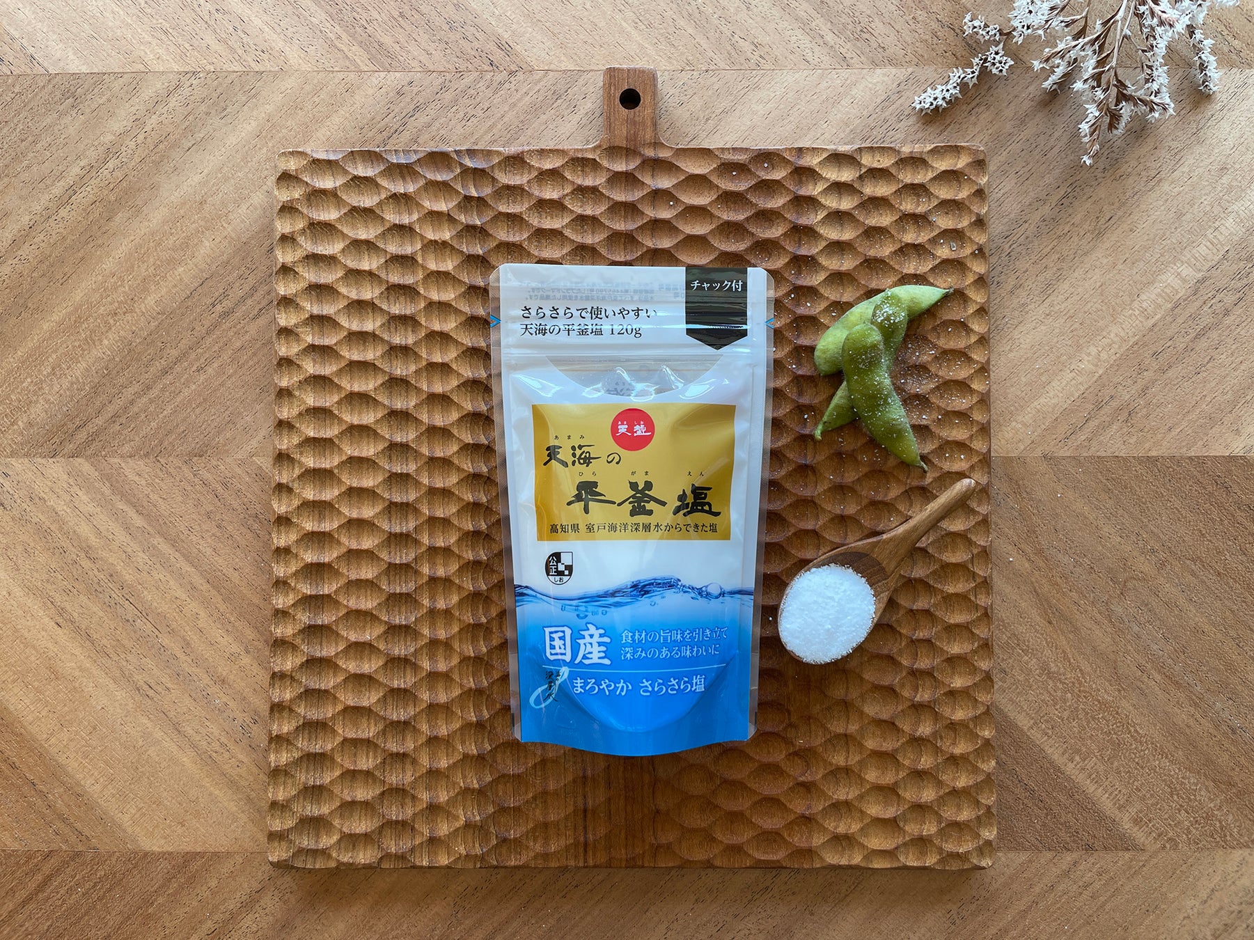 本商品は自然豊かな高知県の海洋深層水を使用し、伝統の平釜でじっくり炊き上げ結晶させた、さらさらの国産塩です。にがりを含んでいるため塩カドがなく、まろやかでコクの深い味わいが料理に奥行きを与えます。生野菜や白身魚のお刺身、枝豆のつけ塩として相性抜群で料理全般に使え、テーブルソルトとしても活躍する塩です。