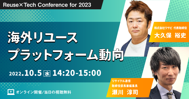 株式会社ワサビ(大阪府大阪市、代表取締役:大久保裕史、取締役:三崎寿一)は、2022年10月4日(火)・5日(水)10:30-18:00に開催されるReuse×Tech Conference for 2023へ登壇し講演を行います。