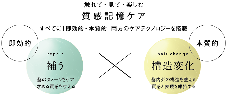 感触と見た目、五感を通じて感じる、髪の質感を表現・維持します。