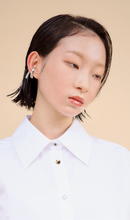 ジュレのようにみずみずしく、髪をサラッと固めてキープ。
