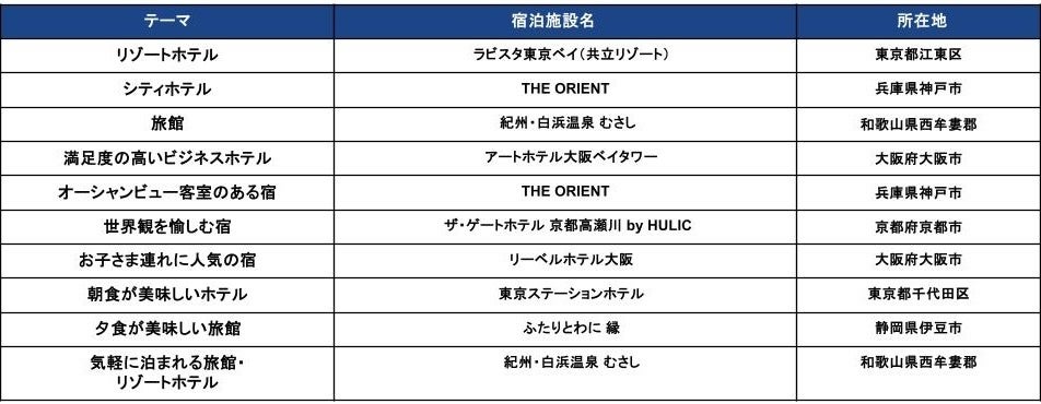 さらに、テーマ別ランキングの「シティホテル」や「オーシャンビュー客室のある宿」に加え、エリア別「近畿」でも首位を獲得するなど、複数のテーマで高い評価を受けました。