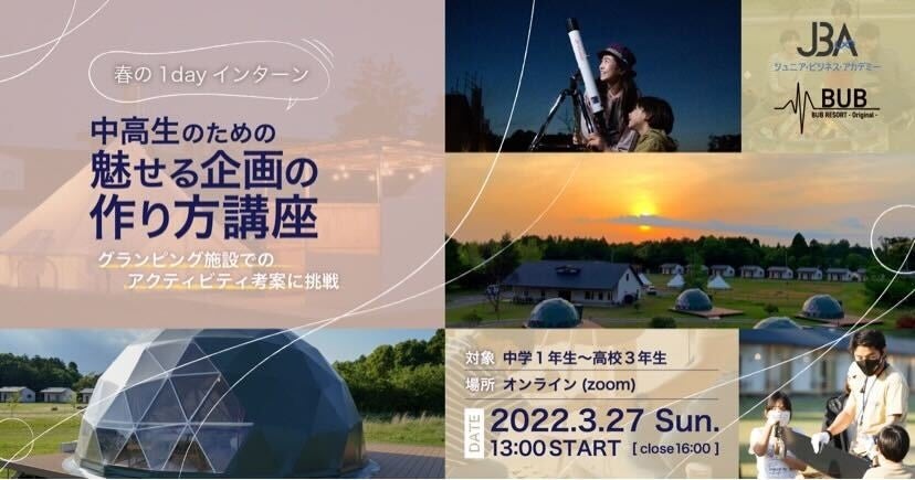 BUB RESORTは今回中高生向けの1dayインターンを実施、学生の学びの機会をサポートをします。