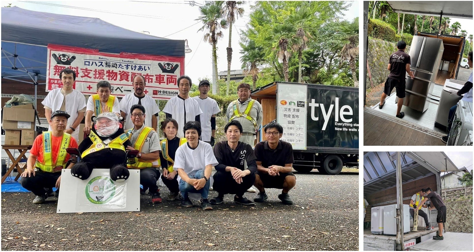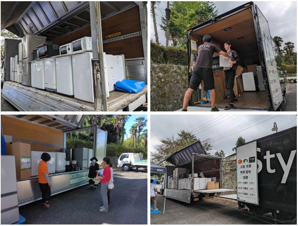「今回当社はお客様よりリサイクル、リユースとしてお引取りした家電製品を支援物資としてご提供させて頂きました。当社の横浜倉庫で保管していた物資を福岡のスタイル引越センターさんに取りに来て頂きうきは市へ届けてもらいました。