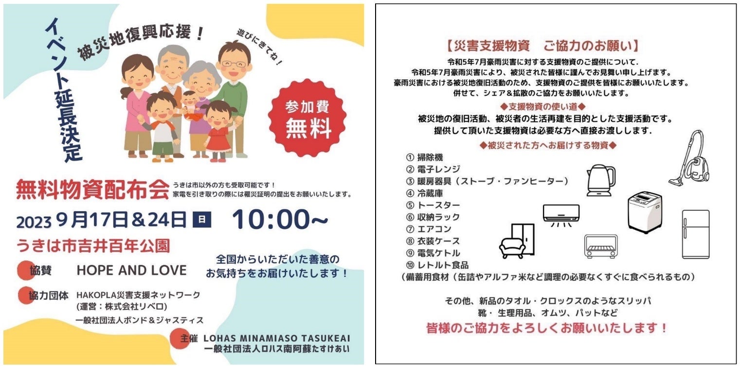 ■9月17日・24日、一般社団法人『ロハス南阿蘇たすけあい』主催の無料物資配布会に参加