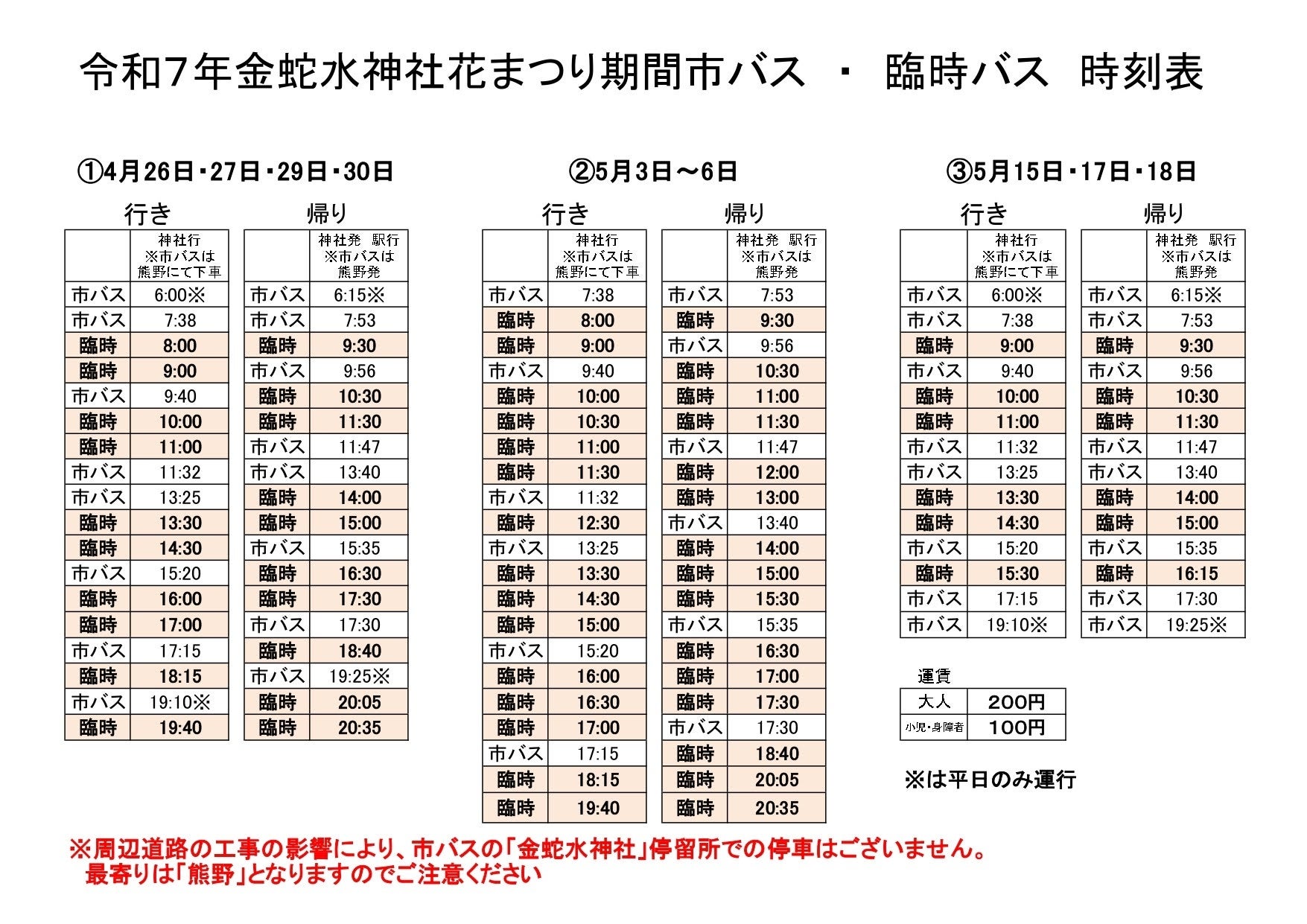 期間中は渋滞が予想されます。ご来社の際は、できるだけ公共の交通機関をご利用をお願いしております。混雑予想日には、神社でも岩沼駅からの臨時バスを出しております。