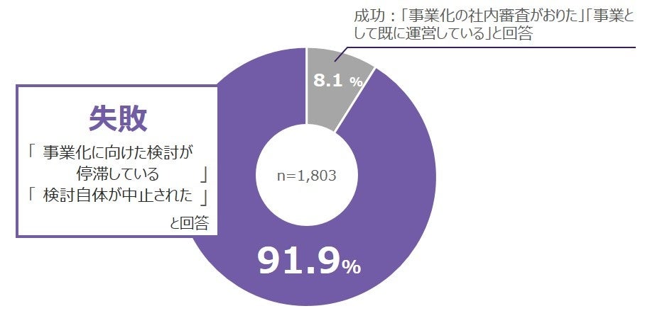 事業化の成否が明らかになっているケースのうち、事業化に“失敗”した割合は91.9%