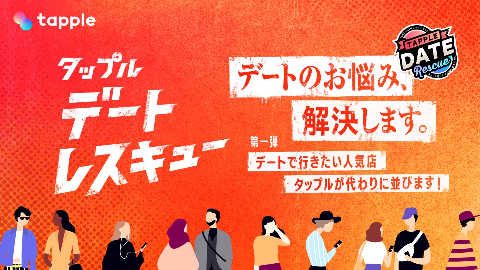 株式会社サイバーエージェント(本社:東京都渋谷区、代表取締役:藤田晋、東証一部上場:証券コード4751)の連結子会社である株式会社タップル(本社:東京都渋谷区、代表取締役社長:飯塚勇太)は、運営するマッチングアプリ「タップル」(https://tapple.me/)において、マッチングしたお相手とのデートを応援するプロジェクト「タップルデートレスキュー」を始動いたします。第一弾は人気店の行列代行を予定しており、2021年12月13日(月)より、タップル利用者の皆さまから並んでほしい飲食店や施設のリクエストの募集を開始します。