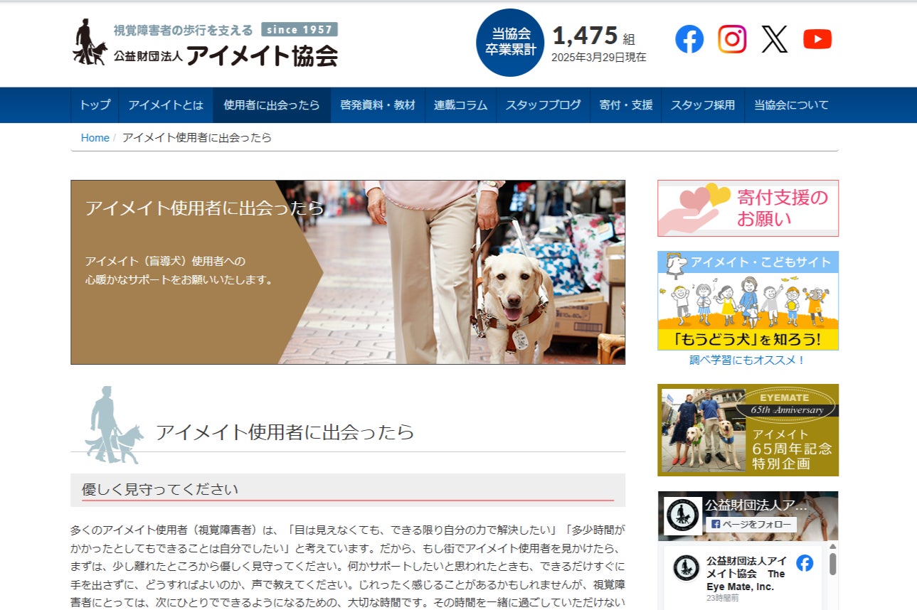 ■街中でアイメイト使用者や視覚障害者に出会ったら?ウェブサイトで学べるコンテンツ