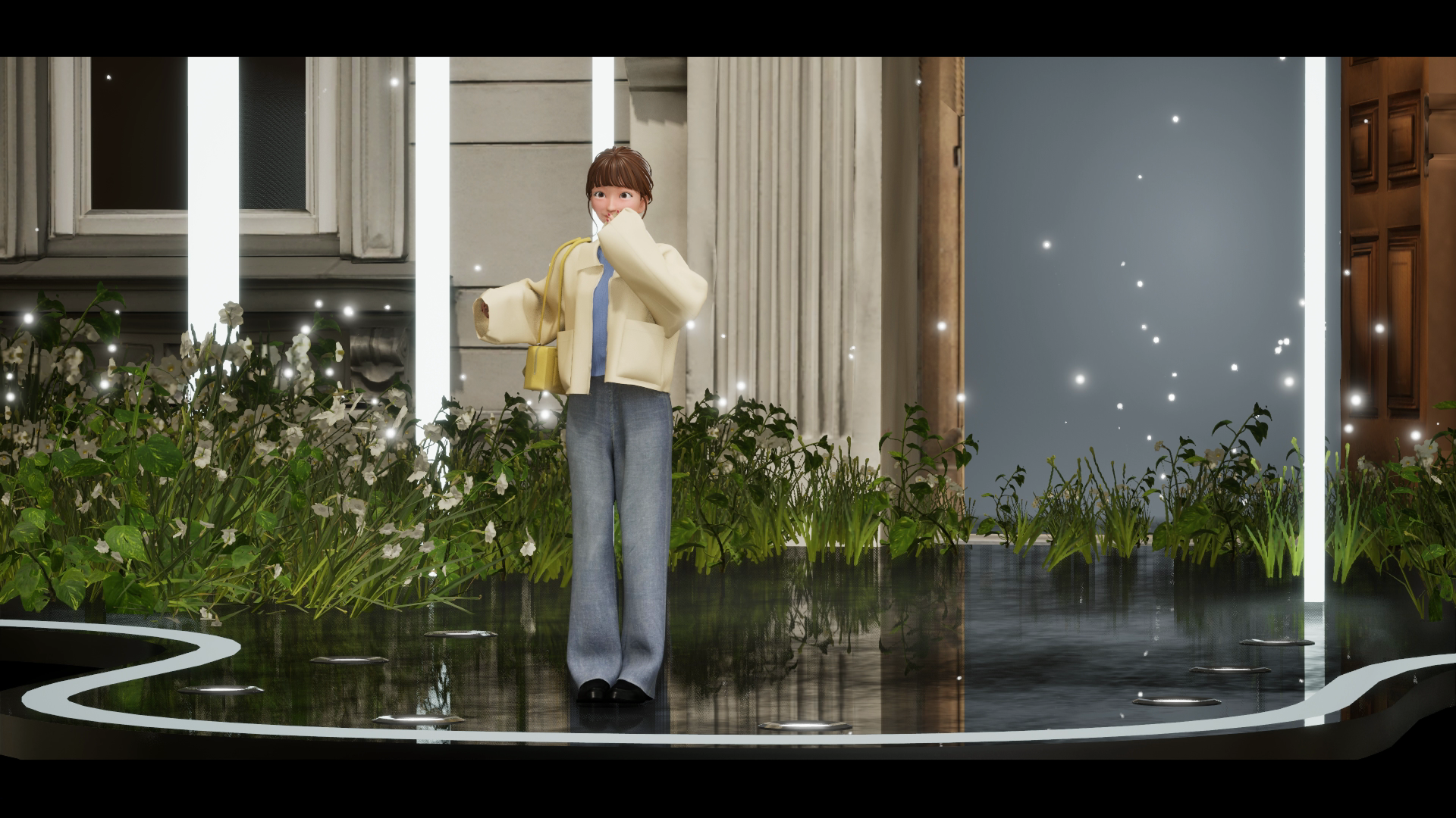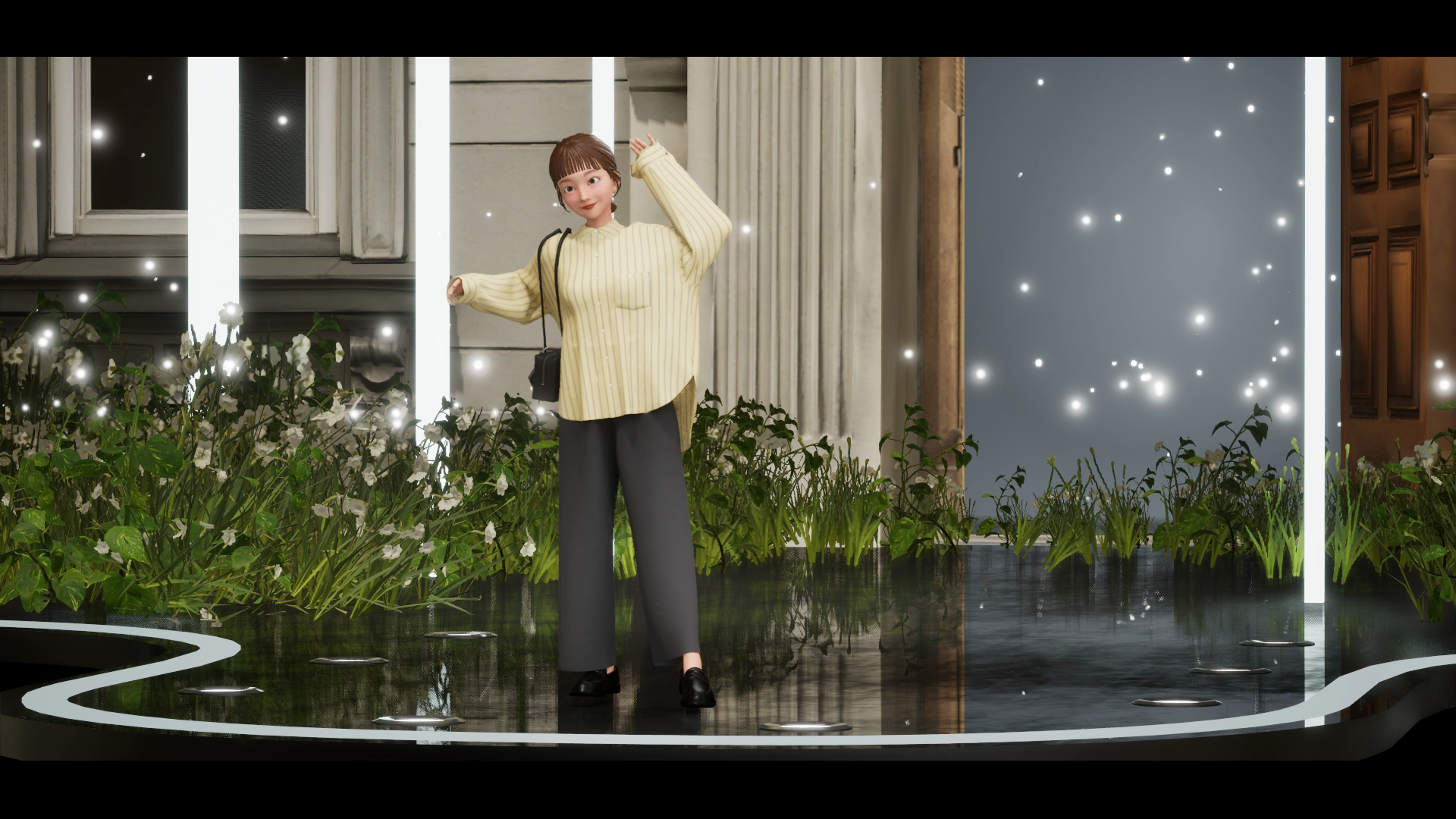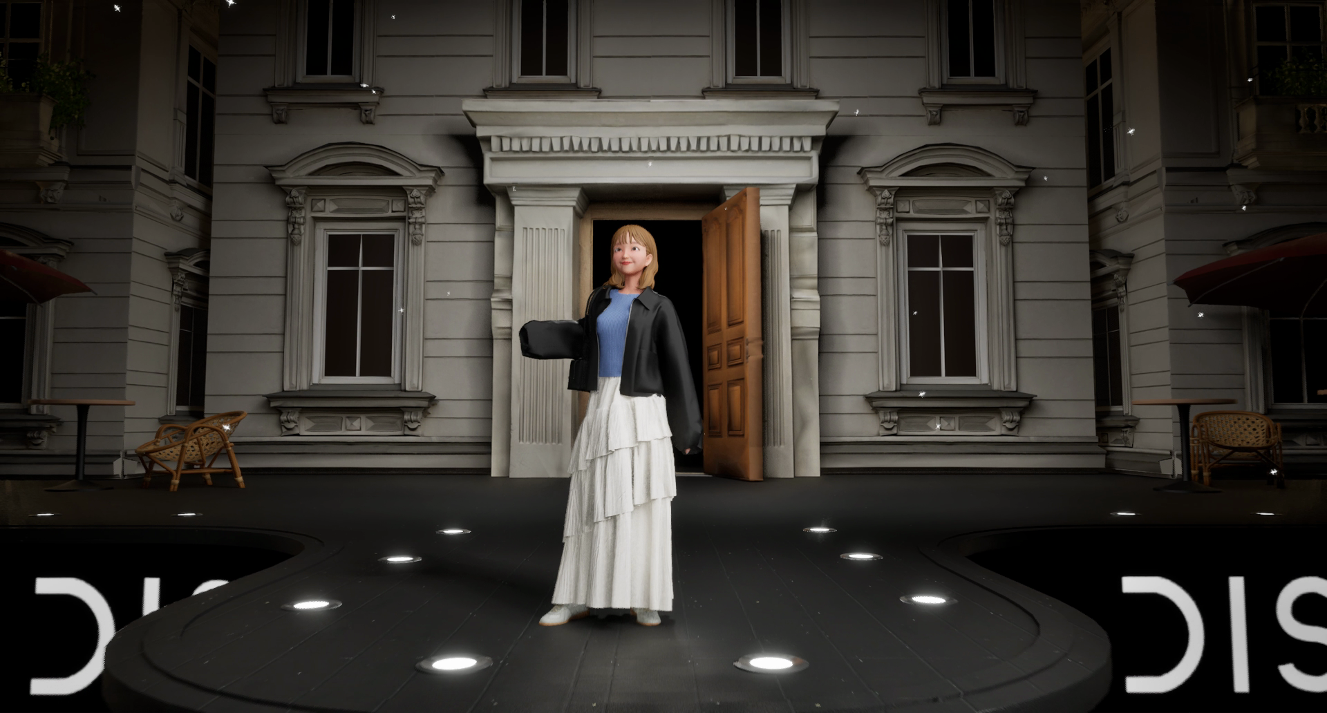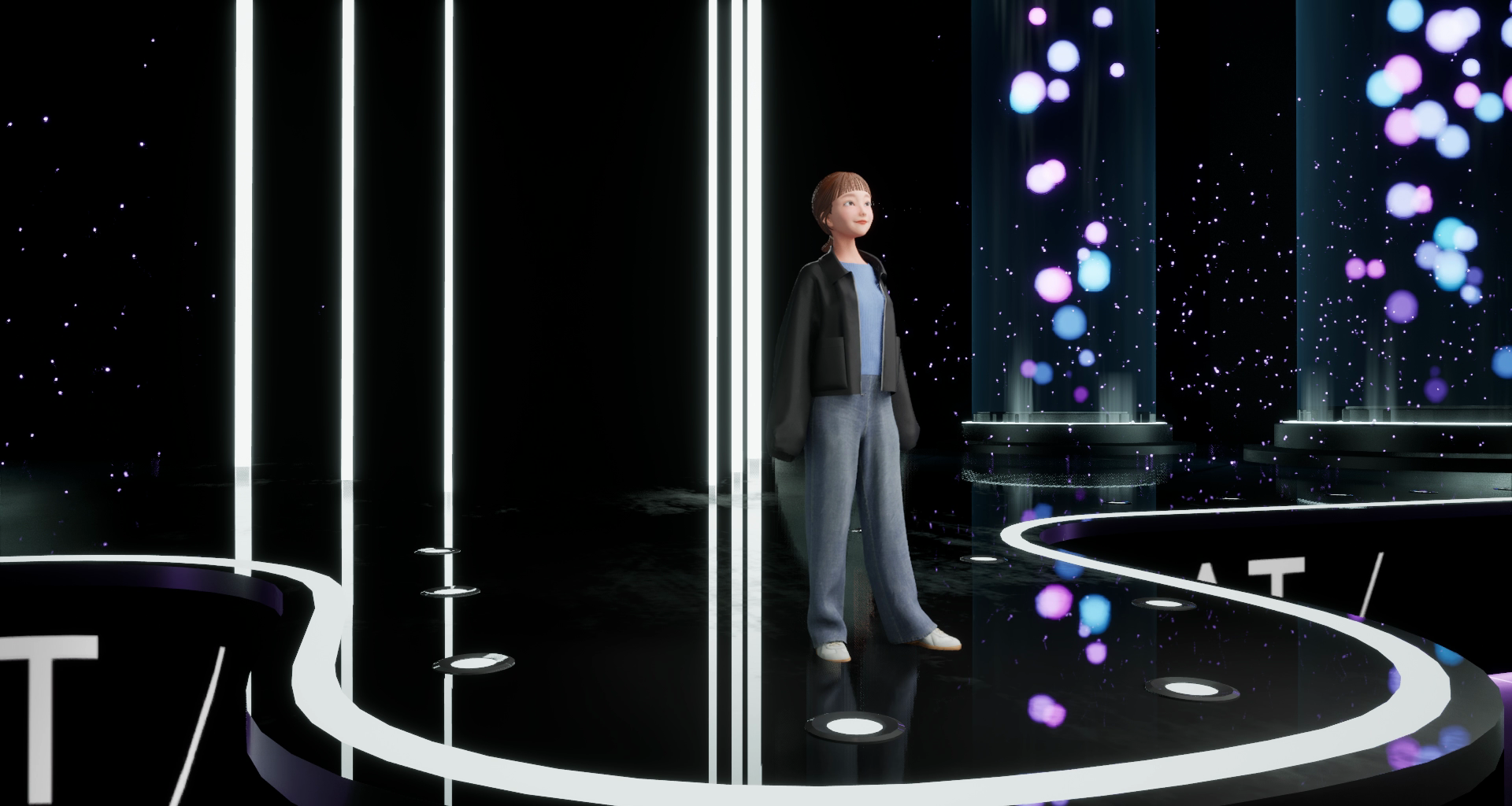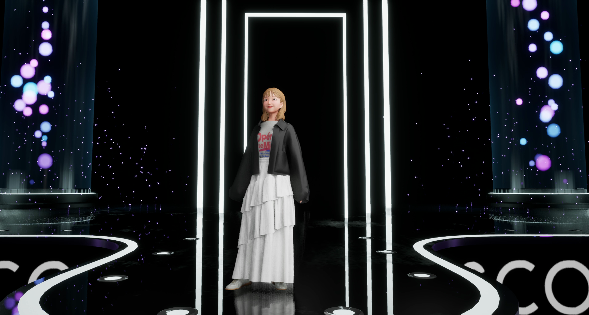 本イベントでは、DISCOATが展開する先進的な取り組みを、Unreal Engineのリアルタイムレンダリングを利用して、自由な視点で臨場感のあるデジタルファッションショーとして作成しました。参加者一人一人が自分の視点で会場内を移動しながら、ファッションショーをお楽しみいただけます。また、参加者同士でのコミニケーションも行うことができます。