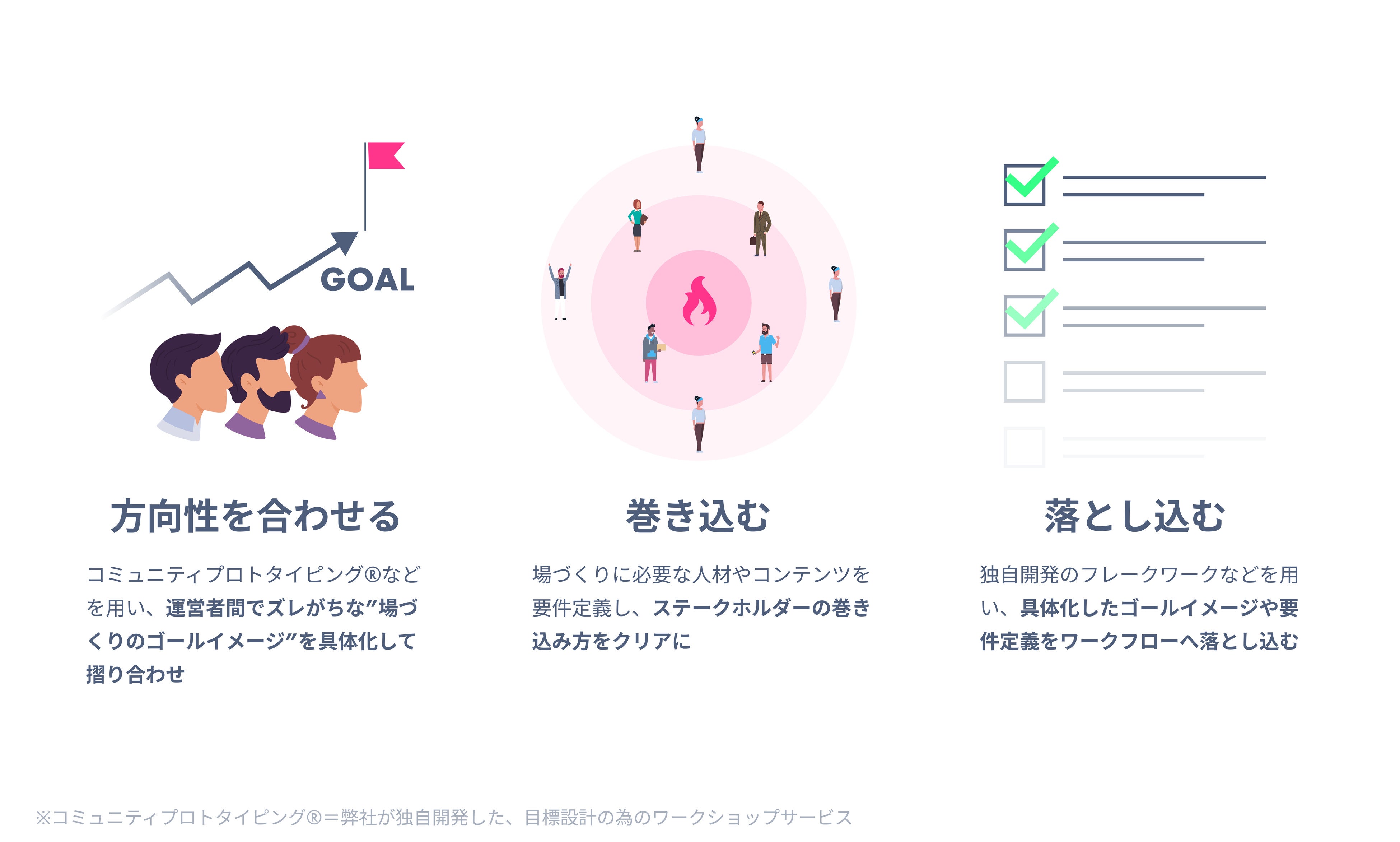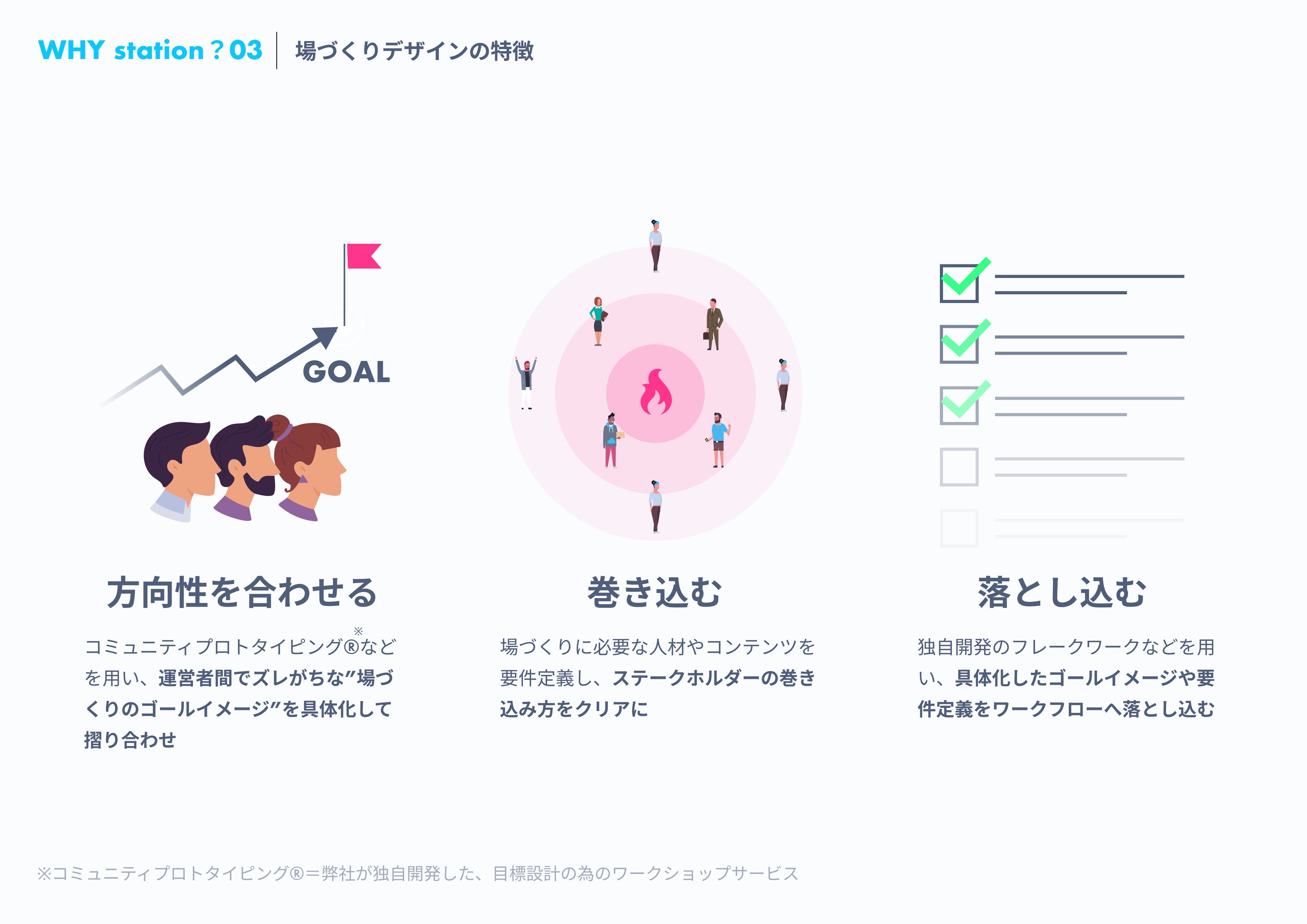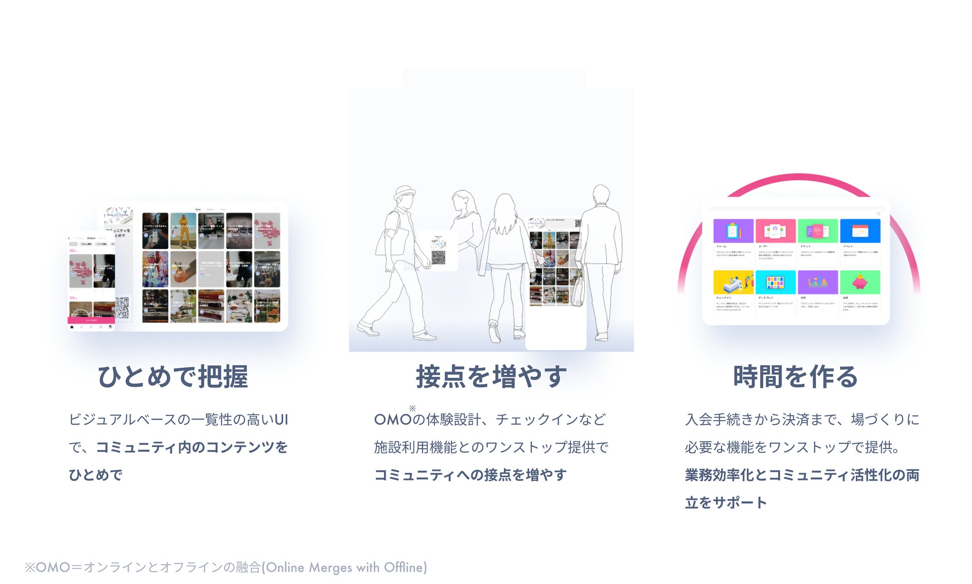 「station」は、これまで見えづらかったコミュニティの資産や価値を可視化し、集客、活性化、メンバーLTVの向上など、コミュニティ運営における目的達成を助けるコミュニティインフラツールです。