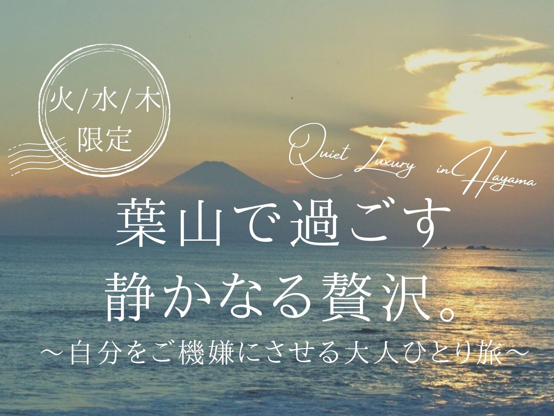 ただ、一人でゆっくりと過ごすだけ。時間の流れに身を任せて静かなプライベート贅沢体験。自分の機嫌は自分で取らなくちゃ。一人だからこそ自分の為に選択出来る自由、1泊2日の大人ひとり旅。