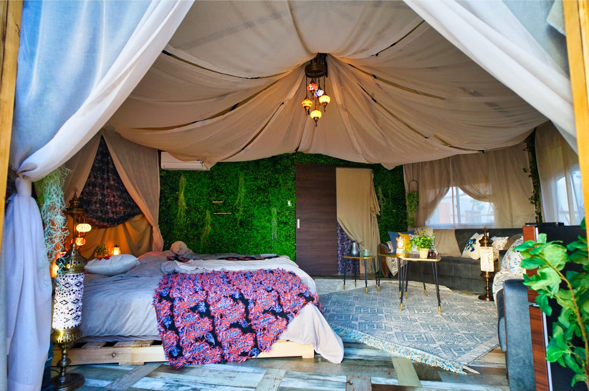 トルコから輸入、日本の気候に合うよう改良を重ねた自慢のゲルでのグランピング。