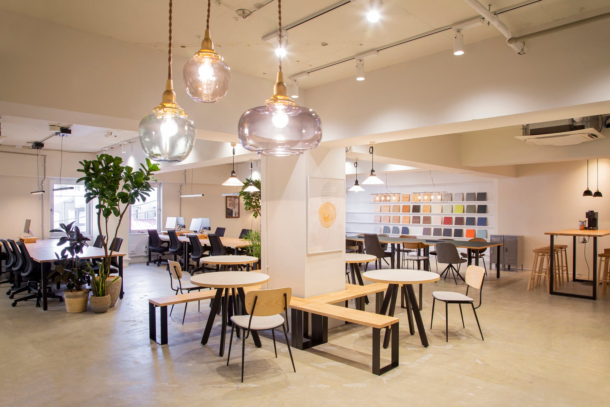 年々高まる法人需要へのサービスを加速させていくため、新オフィスはショールーム型オフィスとしての役割を担います。当社では既にオフィスや学校、宿泊施設、病院、飲食店、美容院、アパレル店舗等に導入実績があるだけなく、インテリア関連会社やデザイン・内装事務所、工務店等とも取引を行なっています。