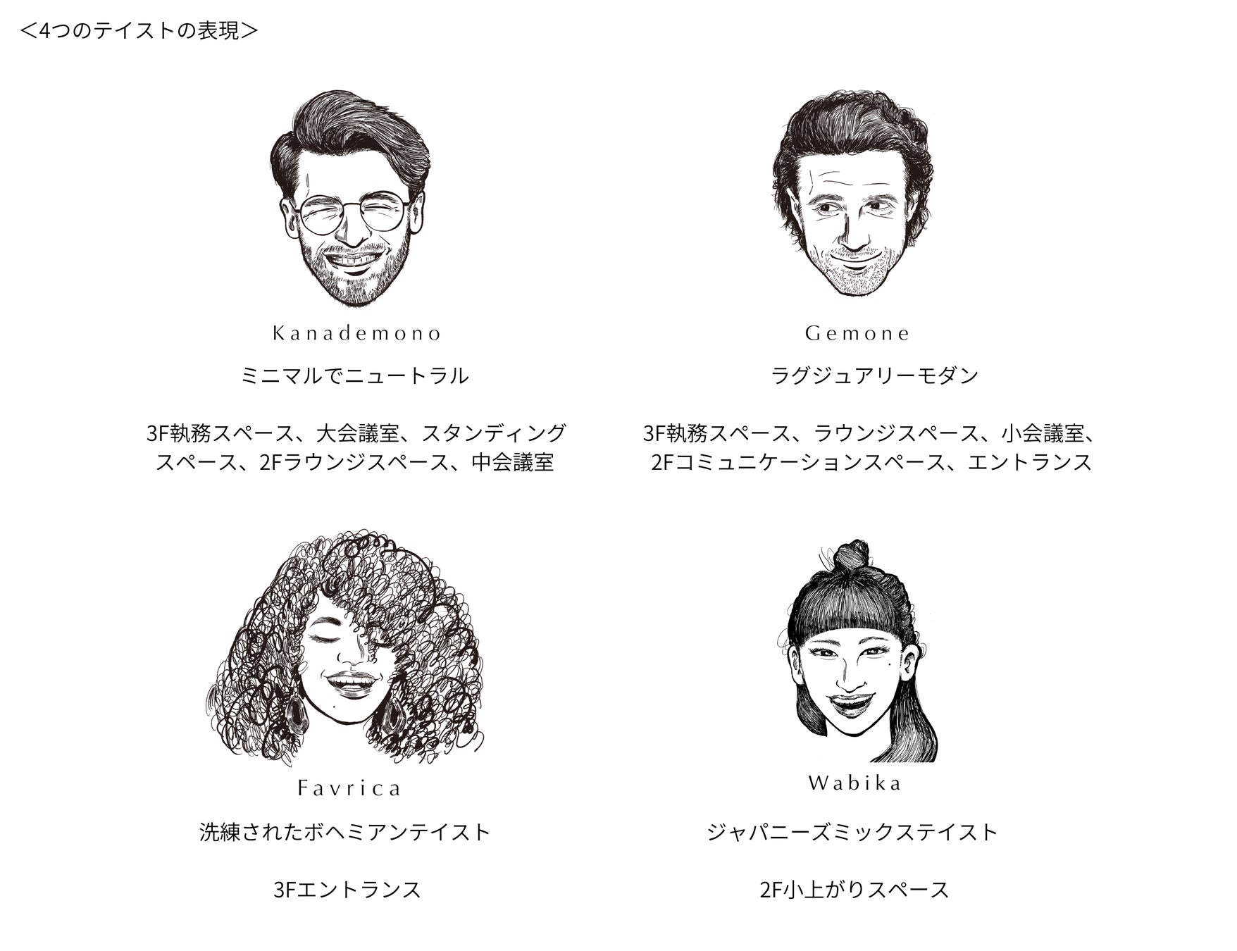 左上からKanademono、Gemone、Favrica、Wabikaスタイルを表現