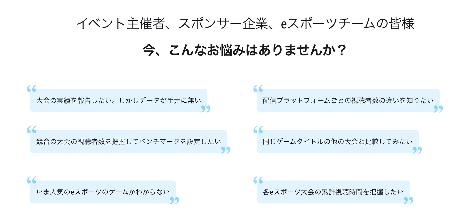 データが手元になく、スポンサー企業に対して大会実績の報告が困難なeスポーツチーム