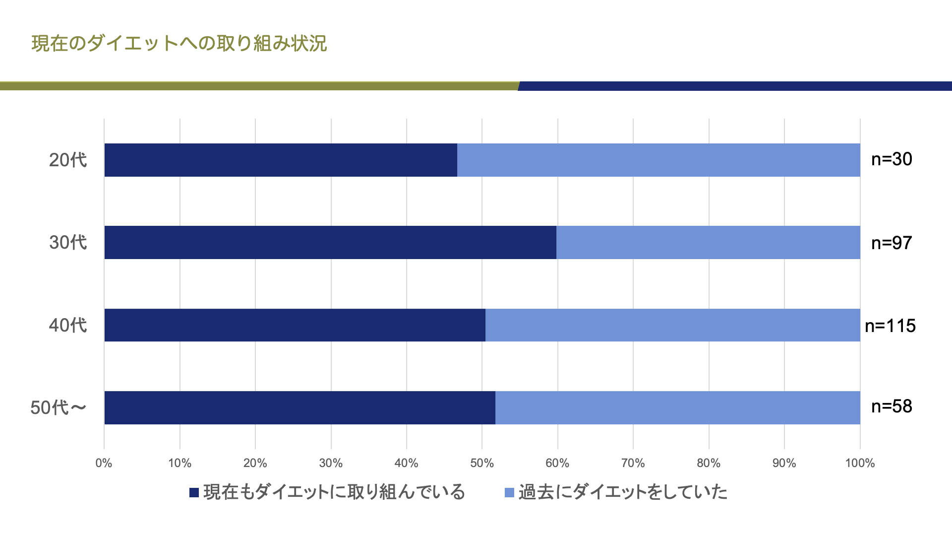 なお、現在のダイエットへの取り組み状況は以下の通り