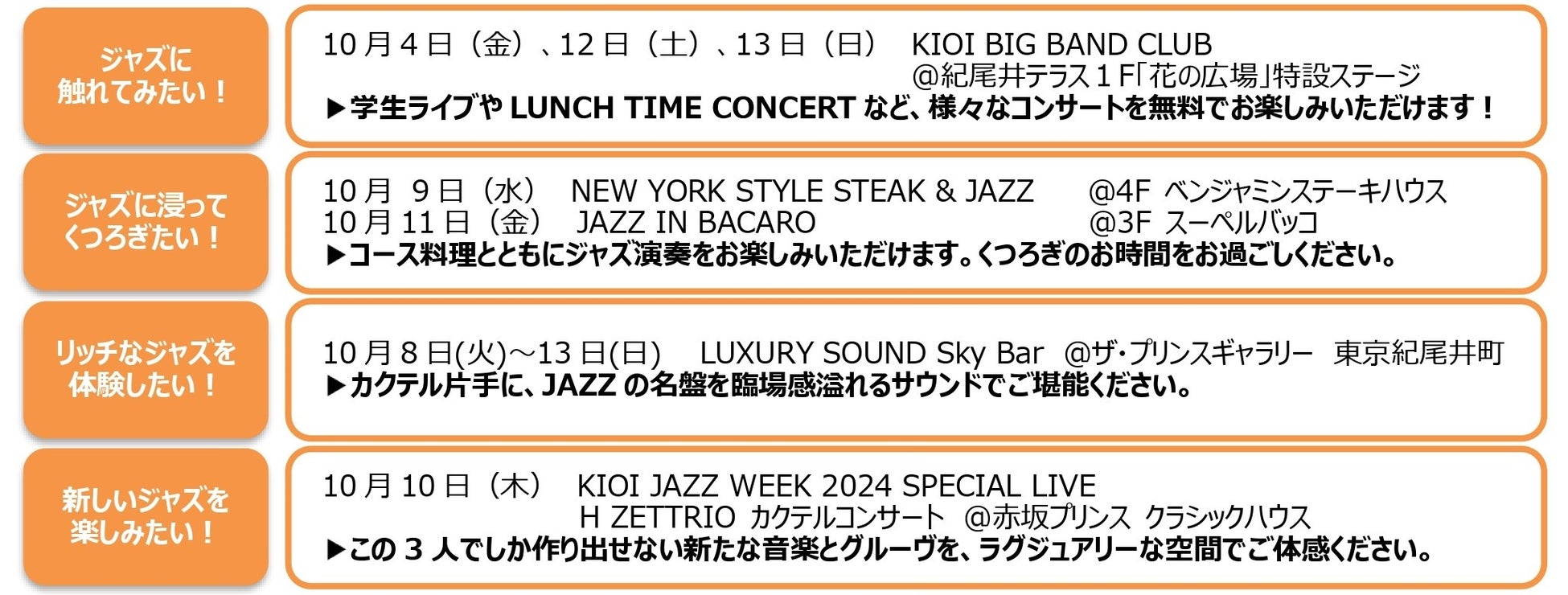 <千代田区・東京ガーデンテラス紀尾井町:秋のイベント情報>今年の秋も10日間限定で紀尾井町がジャズフェス会場に!『KIOI JAZZ WEEK 2024』を開催!
