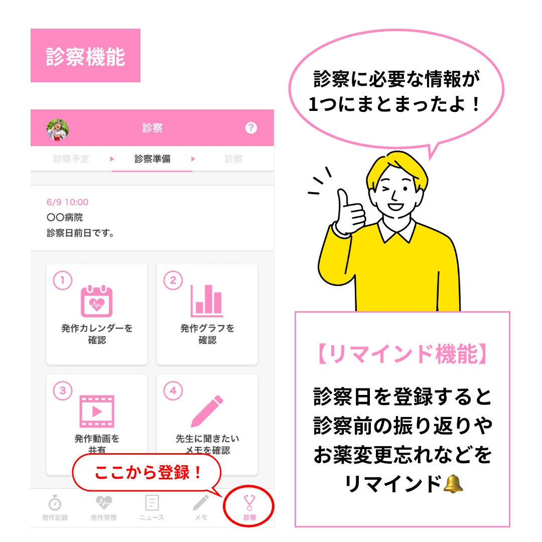 基礎疾患や予防接種、アレルギー情報など、診察や生活上のコミュニケーションに必要な情報をまとめて管理ができるように。暮らしに役立つてんかんニュース配信も開始。