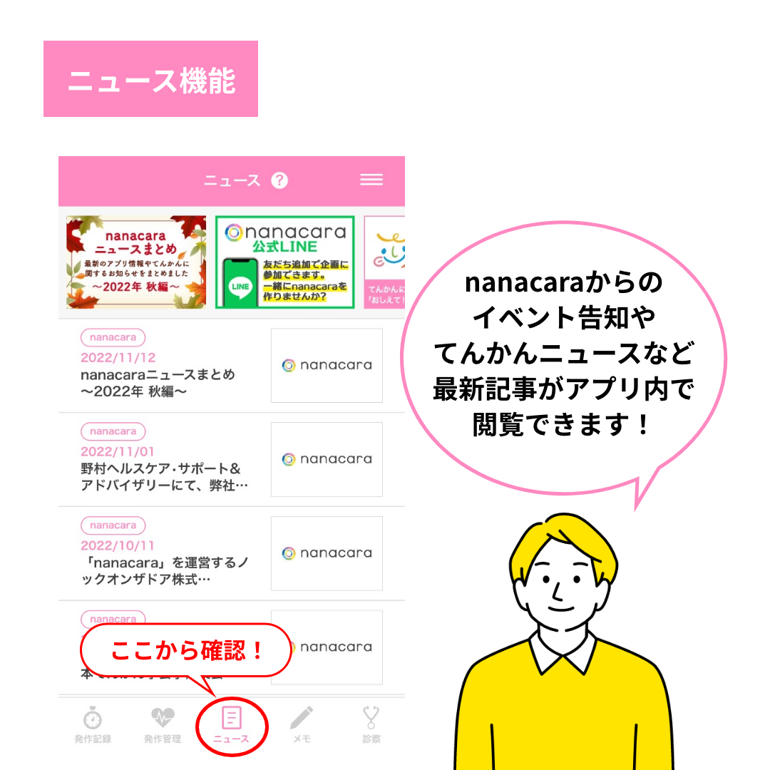 ③nanacaraからのイベント告知、てんかんニュースなどを閲覧