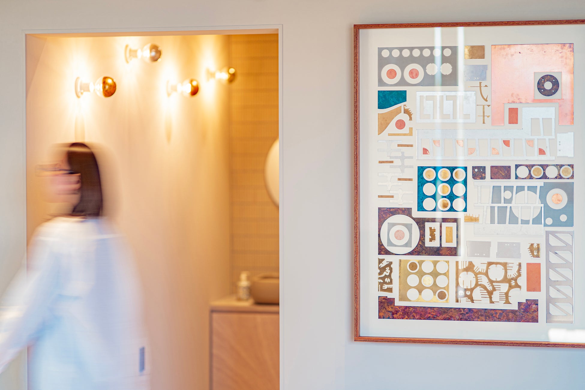 レーザー加工で出たアルミ・真鍮・銅板の端材を再利用し、伝統工芸着色を用いて組み合わせたアートフレーム。資源を職人とのコラボレーションでアップサイクルした美しい循環デザインが出来上がりました。