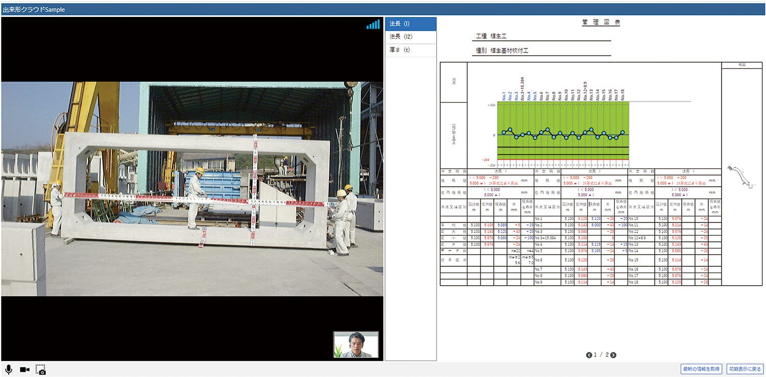 「出来形管理クラウド」内の帳票を確認することができるので、リアルタイムな検査が可能です。