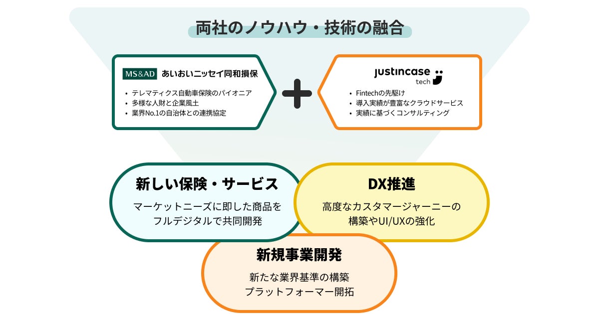 MS&ADインシュアランスグループのあいおいニッセイ同和損害保険株式会社(代表取締役社長:新納 啓介、以下「あいおいニッセイ同和損保」)と、インシュアテック※1 企業である株式会社justInCaseTechnologies(代表取締役:畑 加寿也、以下「JICT」)は、顧客体験価値向上や保険商品・サービスの共同開発を主な目的として2022年12月に業務提携を行いましたので、お知らせします。