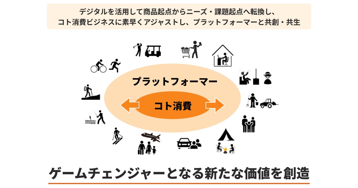 世の中の環境変化やデジタル技術・サービスの進展により、消費行動がモノ消費からコト消費に変化・拡大しています。それらを踏まえ、従来の商品起点の保険ビジネスから、プラットフォーマーや利用するお客さまのニーズ・課題起点へ転換し、多様化する「コト」消費ビジネスに対して迅速に幅広い保険商品・サービスを開発します。
