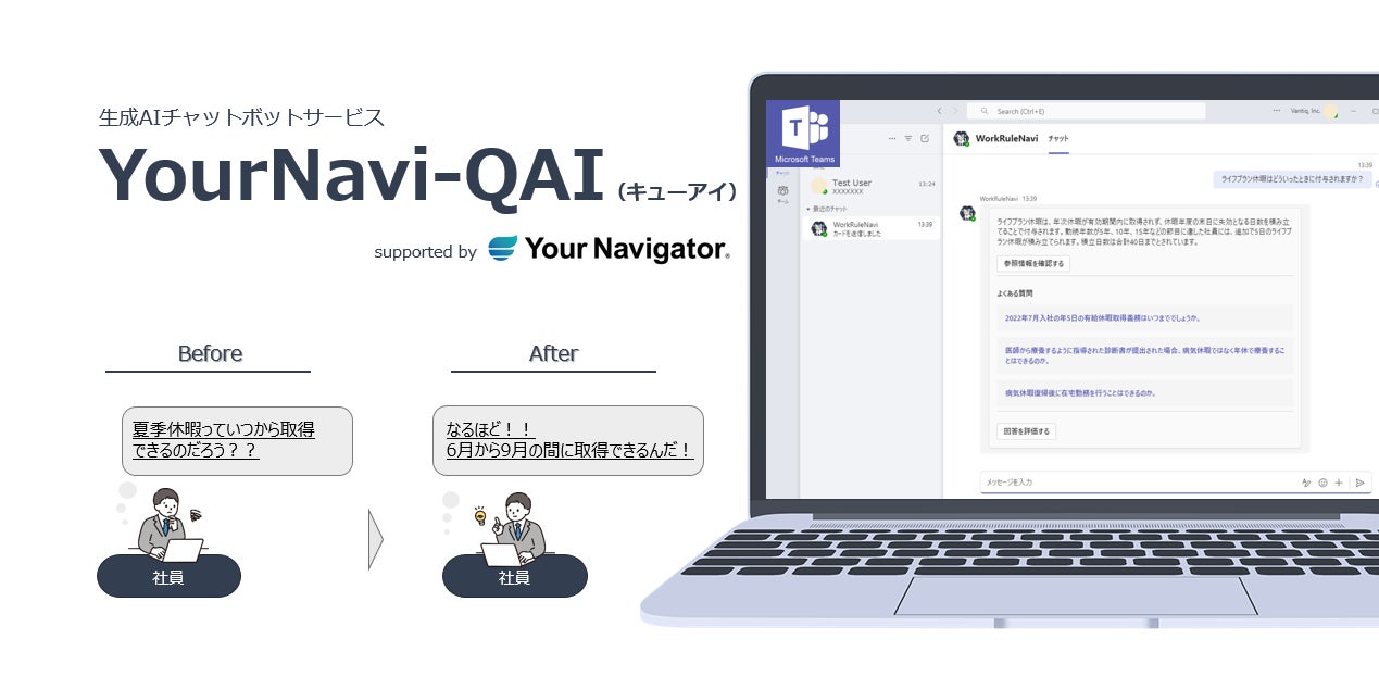 生成AIを活用することで、HR業務を革新!従業員体験を向上させるチャットボット「YourNavi-QAI-総務」を発表 ~問い合わせ業務の効率化・HR業務の高度化を支えるパートナー~