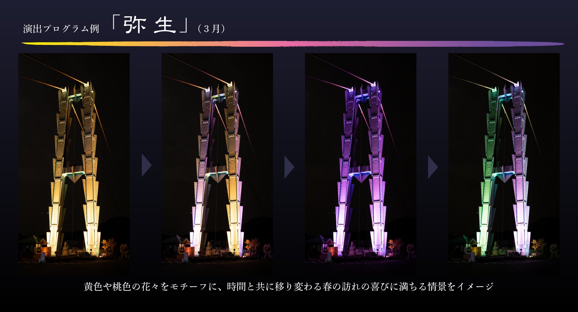 日没後の照明演出は通年を予定。4月27日に点灯式が行われます。