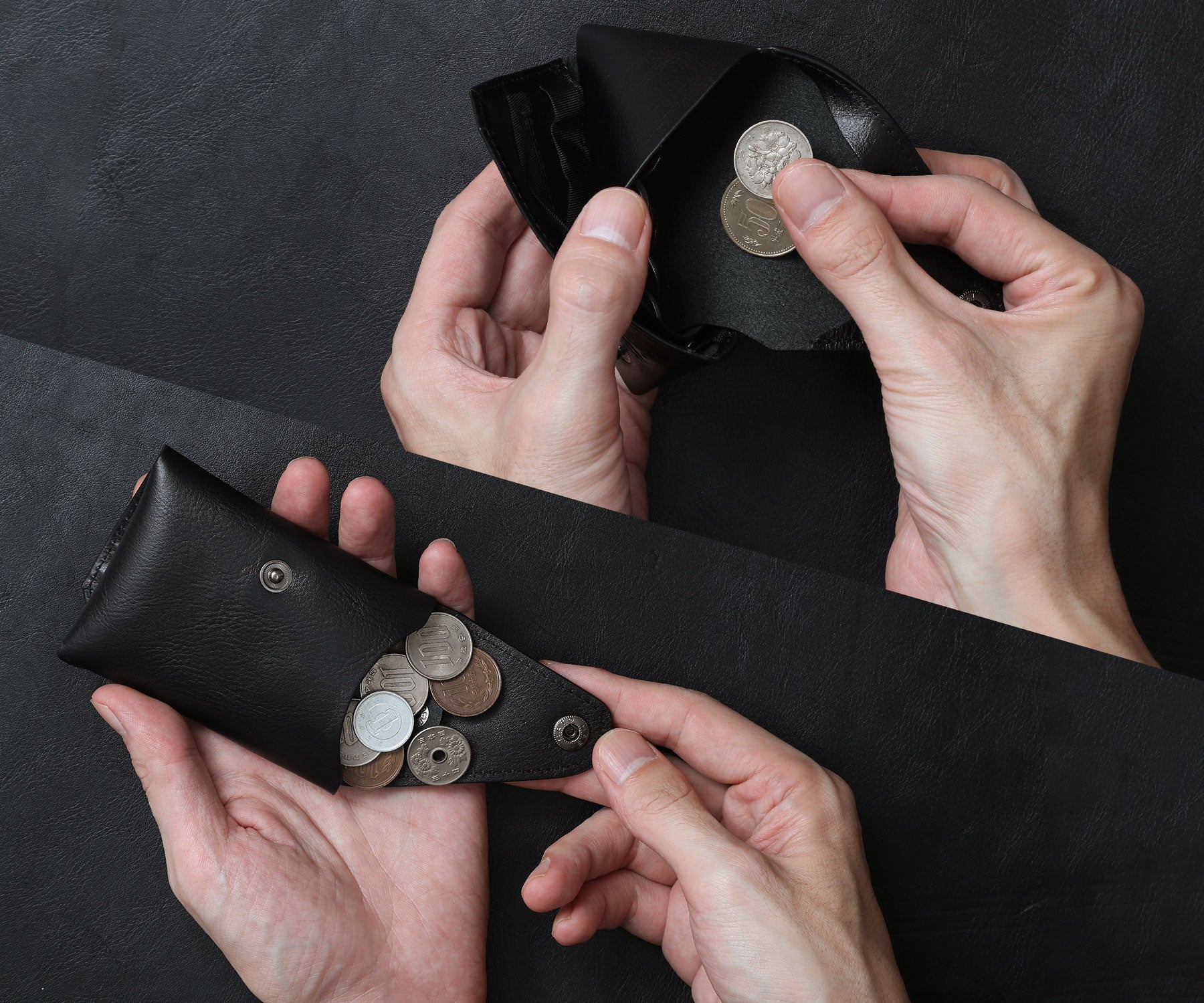 フリーポケットへは両面からアクセスする事ができるユニークなつくり。すぐにコインを取り出せるので、急なお支払い時にもたつきなくスマートにご対応を頂けます。