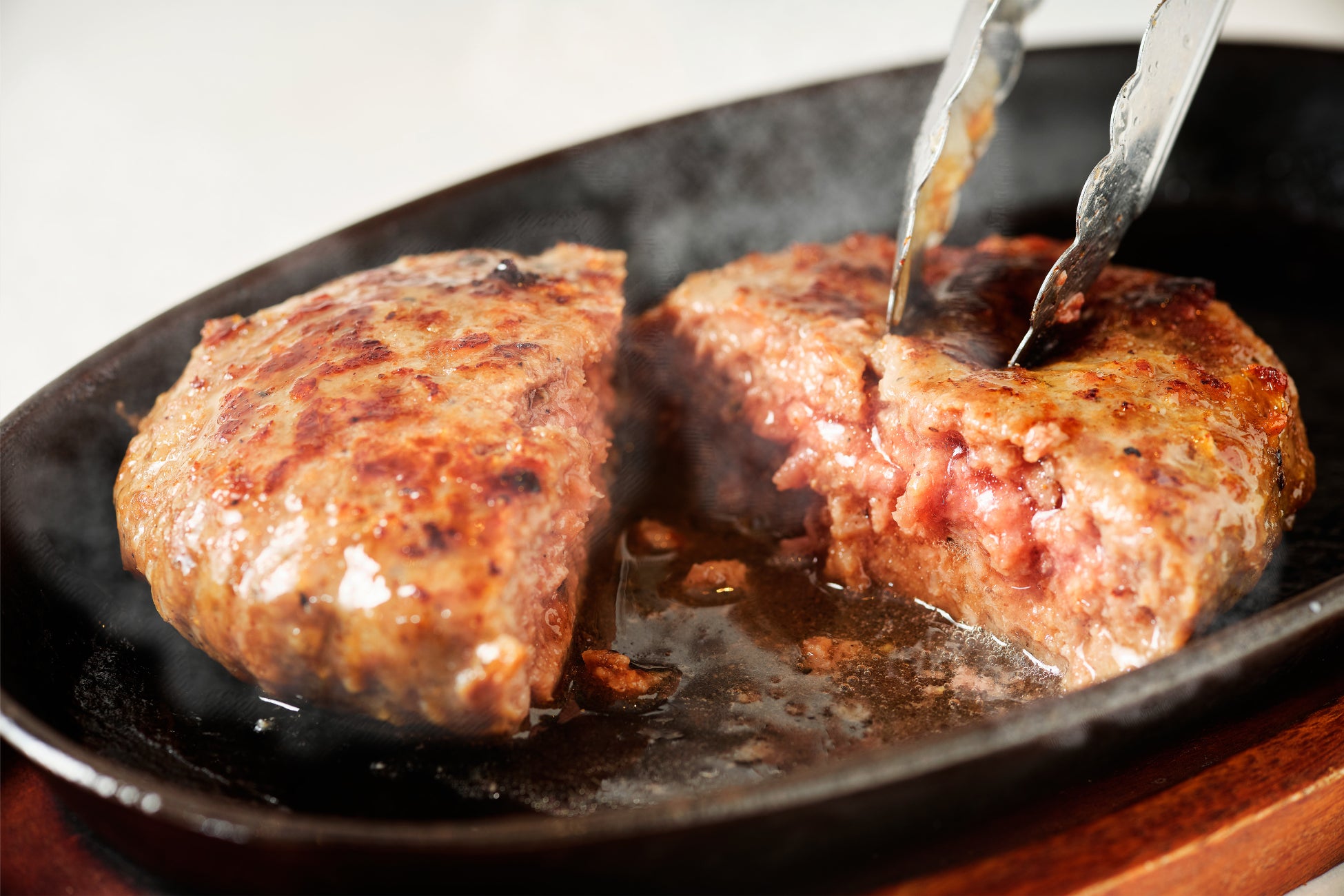 8年を掛けて何度もブラッシュアップし続けているハンバーグは毎年牛の産地などに合わせながら豚の配合、スパイスの配合などを変更しながら、肉にあった最高の黄金比率で作成しております