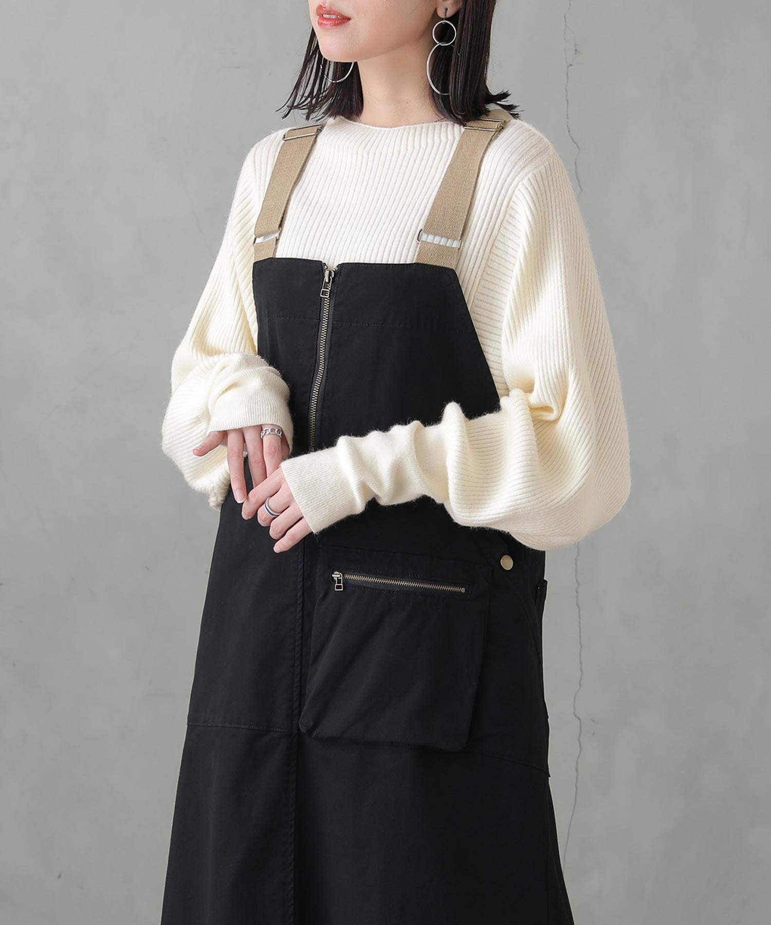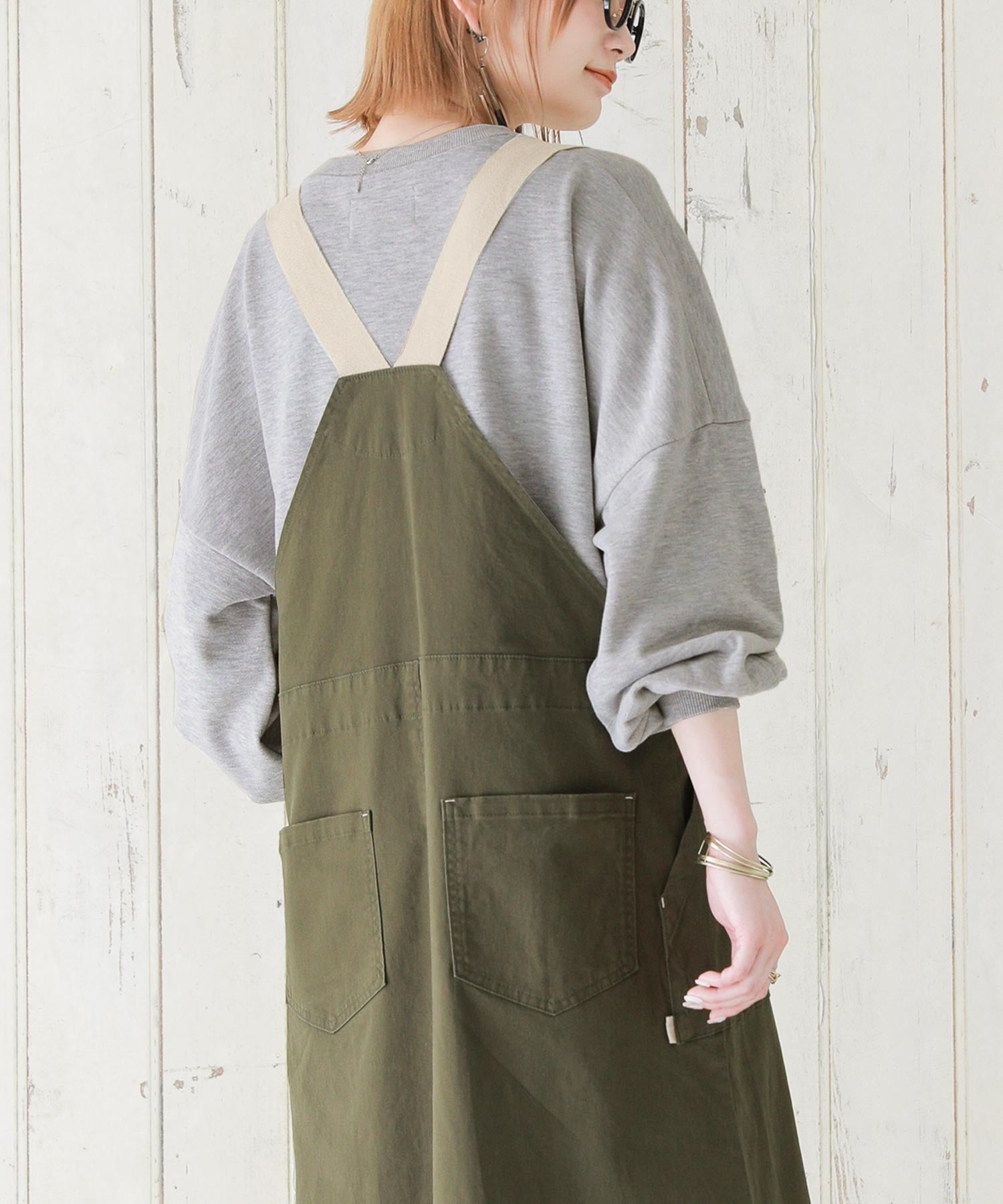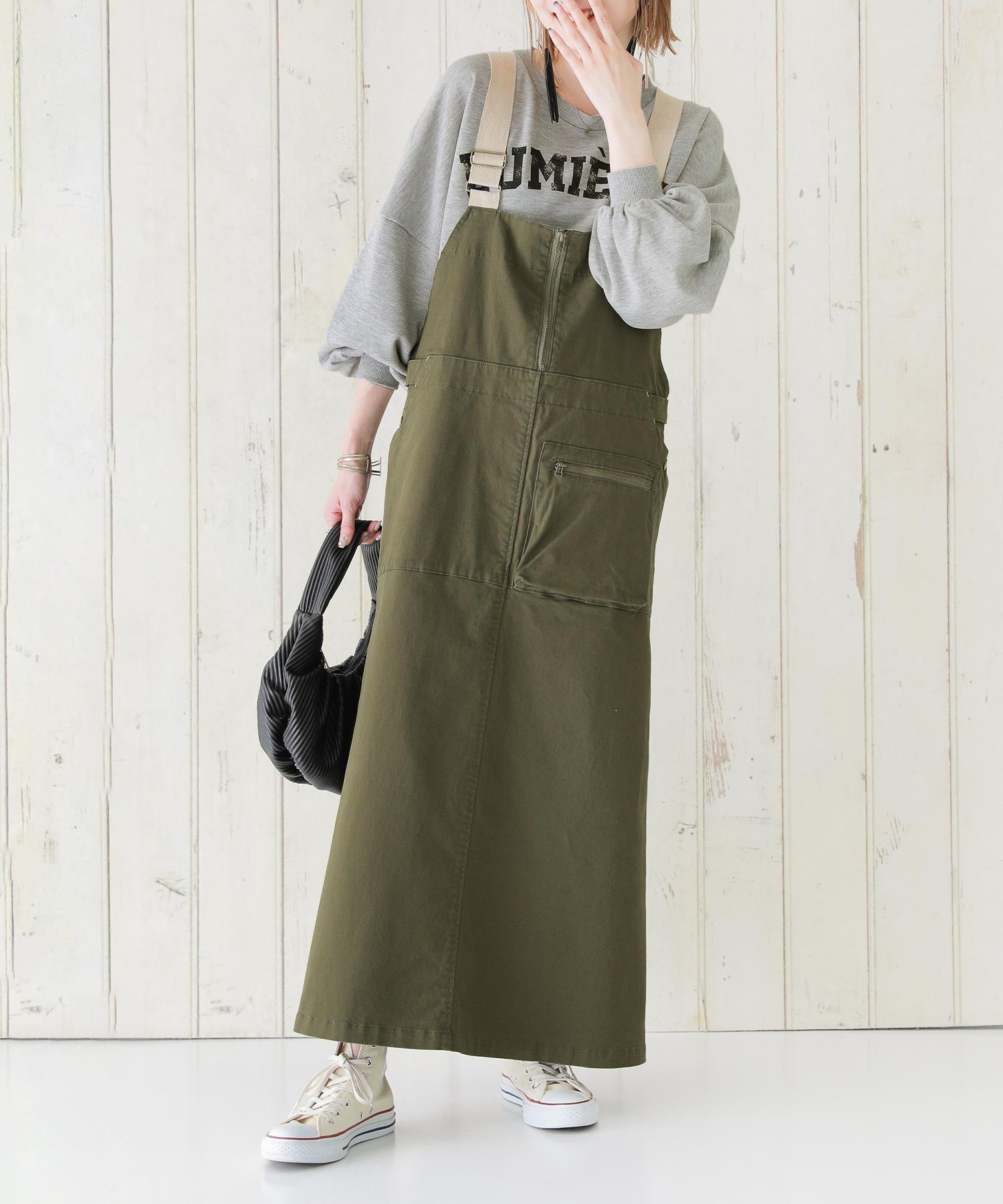 Aラインシルエットが大人可愛く仕立てる、アウトドアテイストのジャンパースカートです。