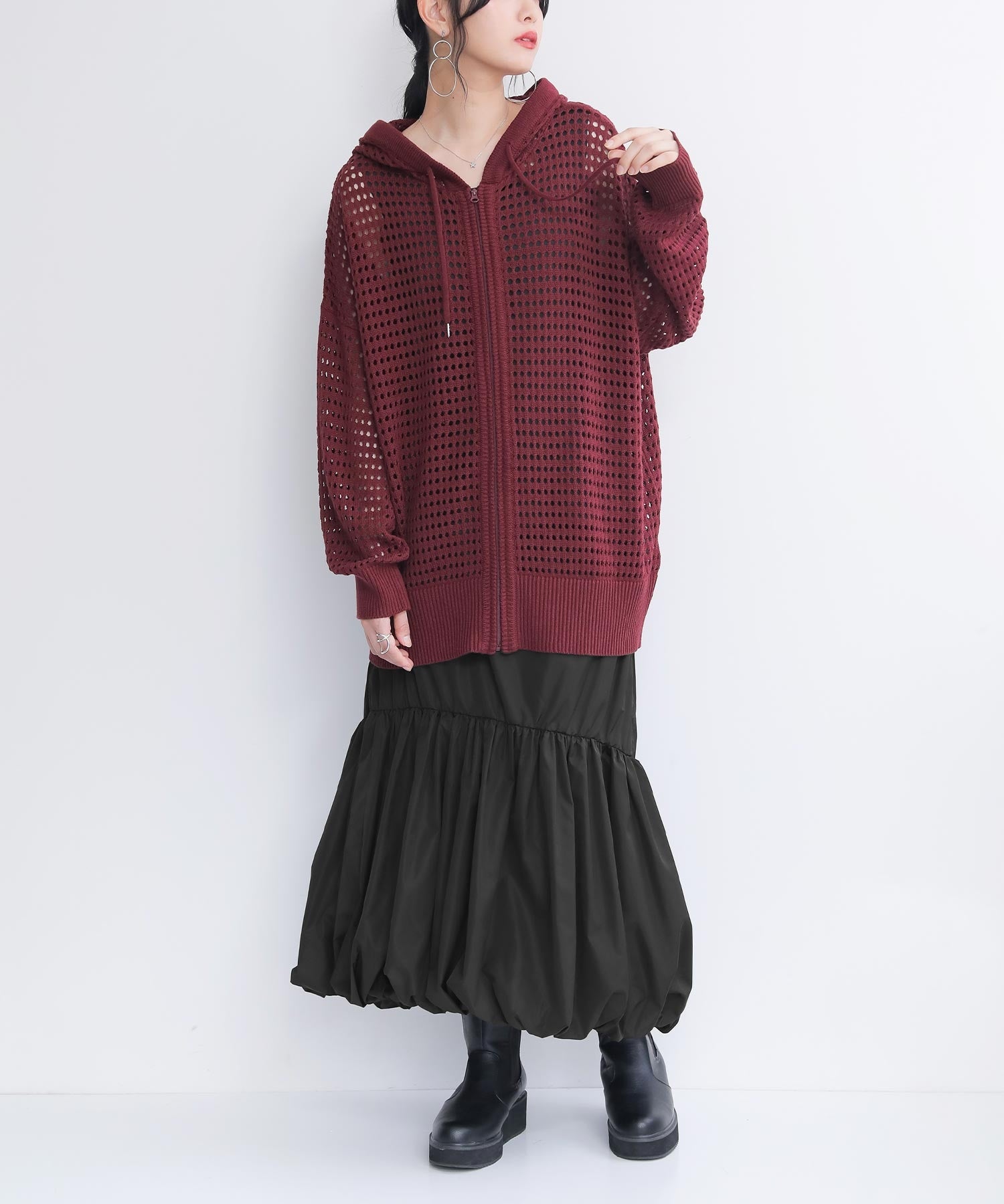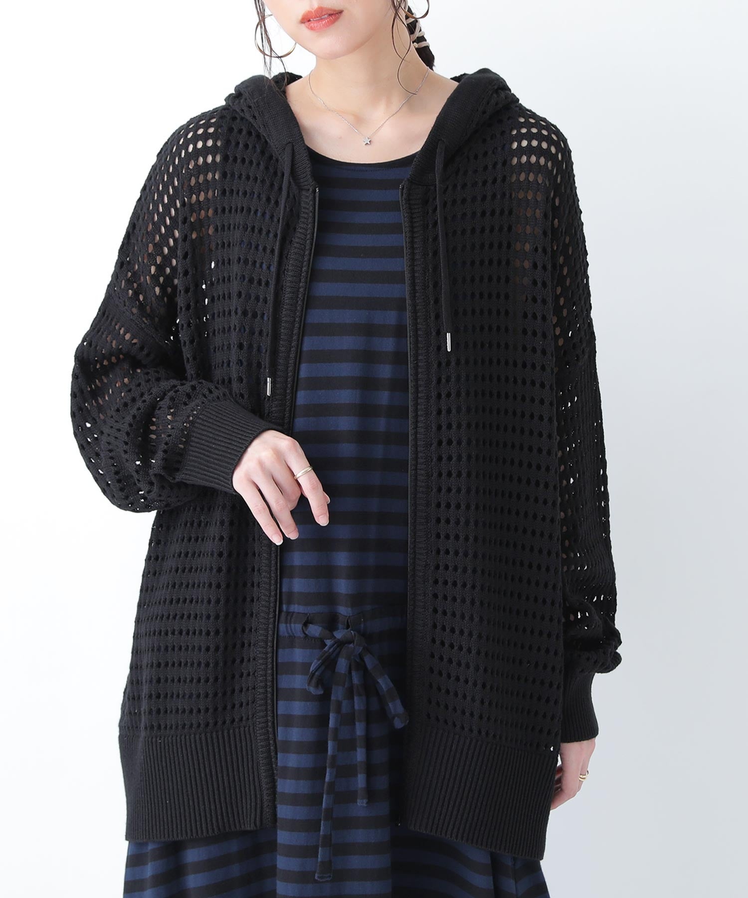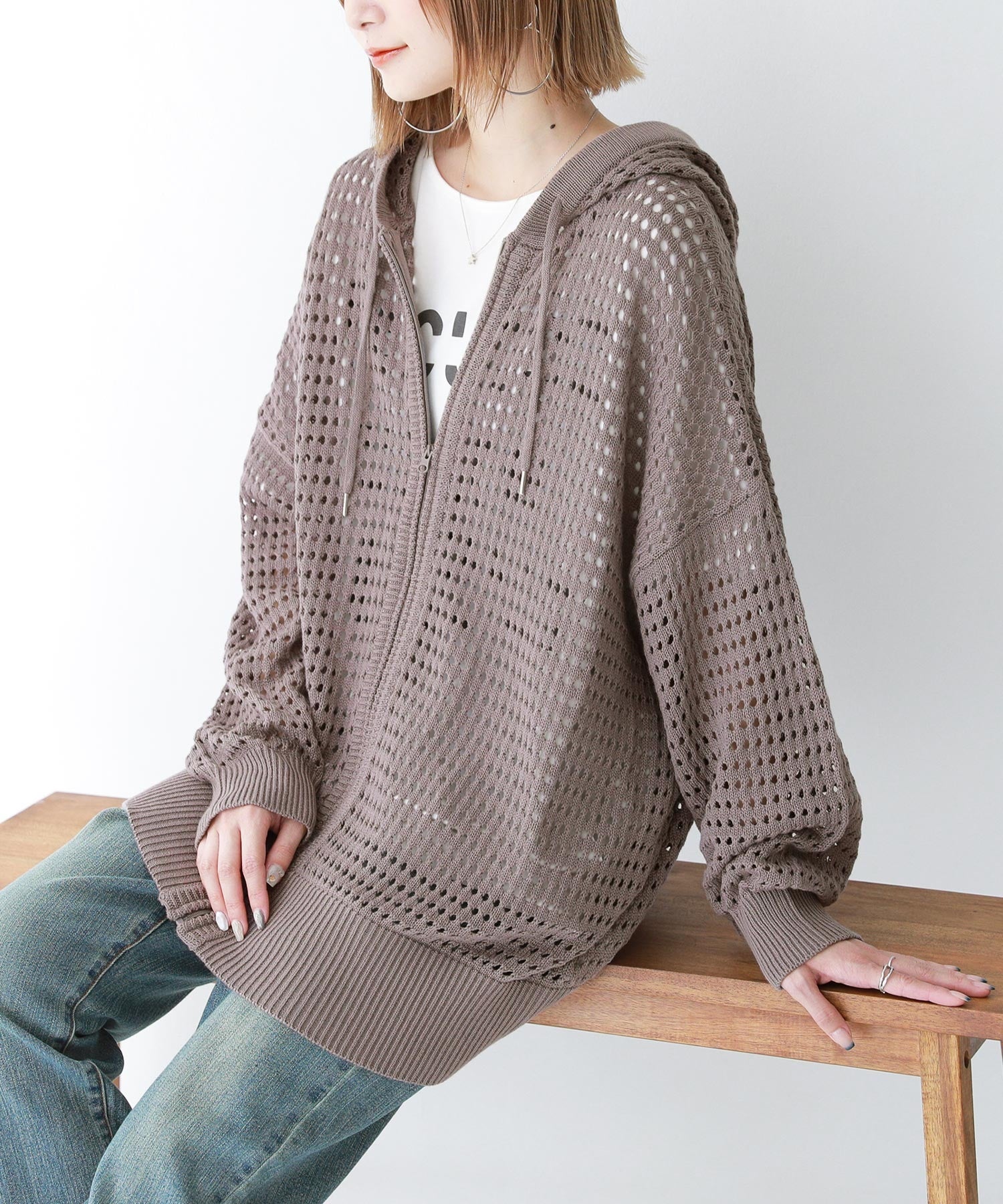 程よい穴あきの透け感で、レイヤードスタイルを格上げしてくれるトレンド感溢れるメッシュ編みパーカーです。
