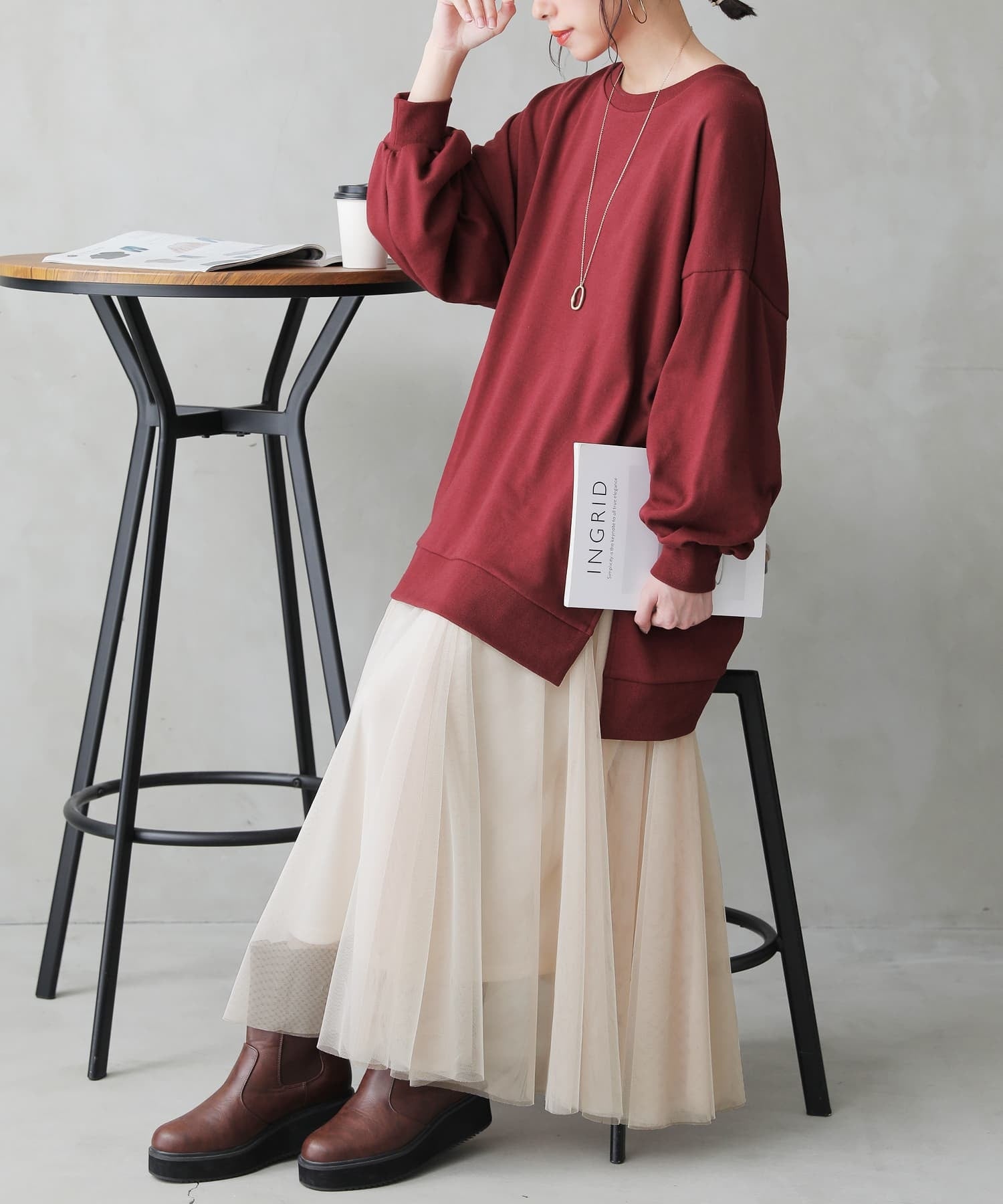 ヒップもすっぽり隠してくれる大人女子に嬉しい長めの着丈になっています。