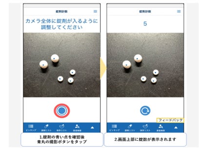 ※「AI錠剤計数機能(β版)」は現在テスト段階のため、錠剤の計数精度については十分でない場合がございます。皆さまからいただいたフィードバックをもとに、今後も機能の改善に努めてまいります。なお、将来的に計数精度が向上した際には、「AI錠剤計数」機能を有償サービスとして提供させていただく可能性がございますので、あらかじめご了承ください。