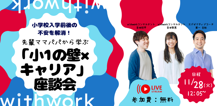 働く親が抱える小学校入学前後の不安を共有し、先輩ママパパが体験談をシェアするオンラインイベントを「withwork」が開催。