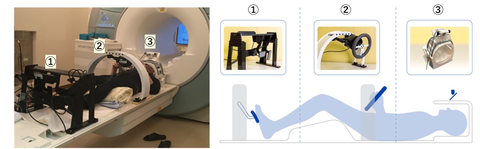 本研究では、MRIの中で実際の運転に近い体験ができる特殊な運転シミュレーターで実施しました。このシミュレーターは、実車同様のハンドルやペダル操作が可能で、さらに運転中の視線の動きも同時に計測が可能です。