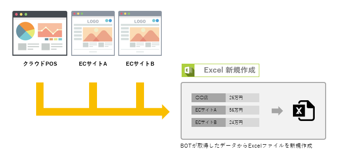 ・クラウドPOSやECサイトから取得した売上情報を基にExcelファイルを生成する。