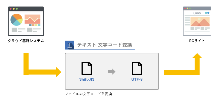 ・クラウド基幹システムからダウンロードしたCSVファイルの文字コードを変換し、ECサイトにアップロードする。