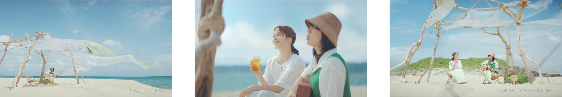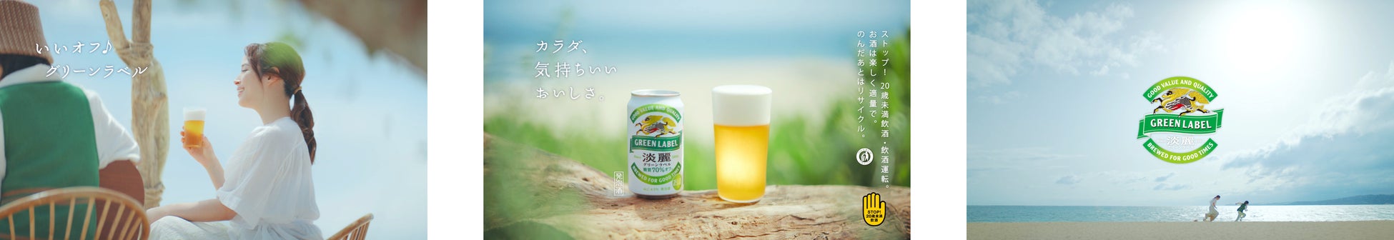 エメラルドグリーンの海に浮かぶ緑色のハートが描く、「淡麗グリーンラベル」らしい爽やかな世界にも注目しながら、これからの季節にぴったりなTVCMをぜひご覧ください。さらに今回は、CM撮影の合間や撮影後に2人が過ごす“いいオフの時間”を描いた「スペシャル映像」も公開します。あいみょんさんの「裸の心」の弾き語りにも注目です!