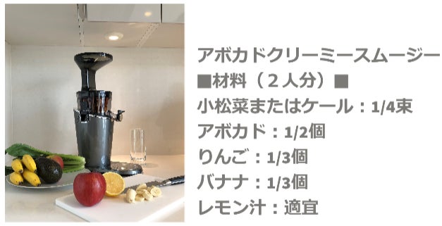 睡眠に効果のあるアボカドやバナナなどを使いキッチンでしぼりたてを