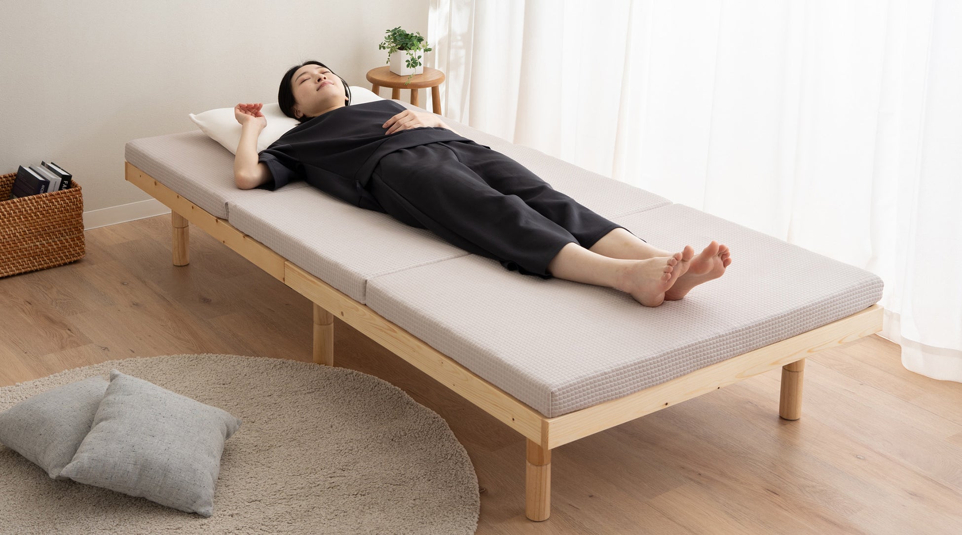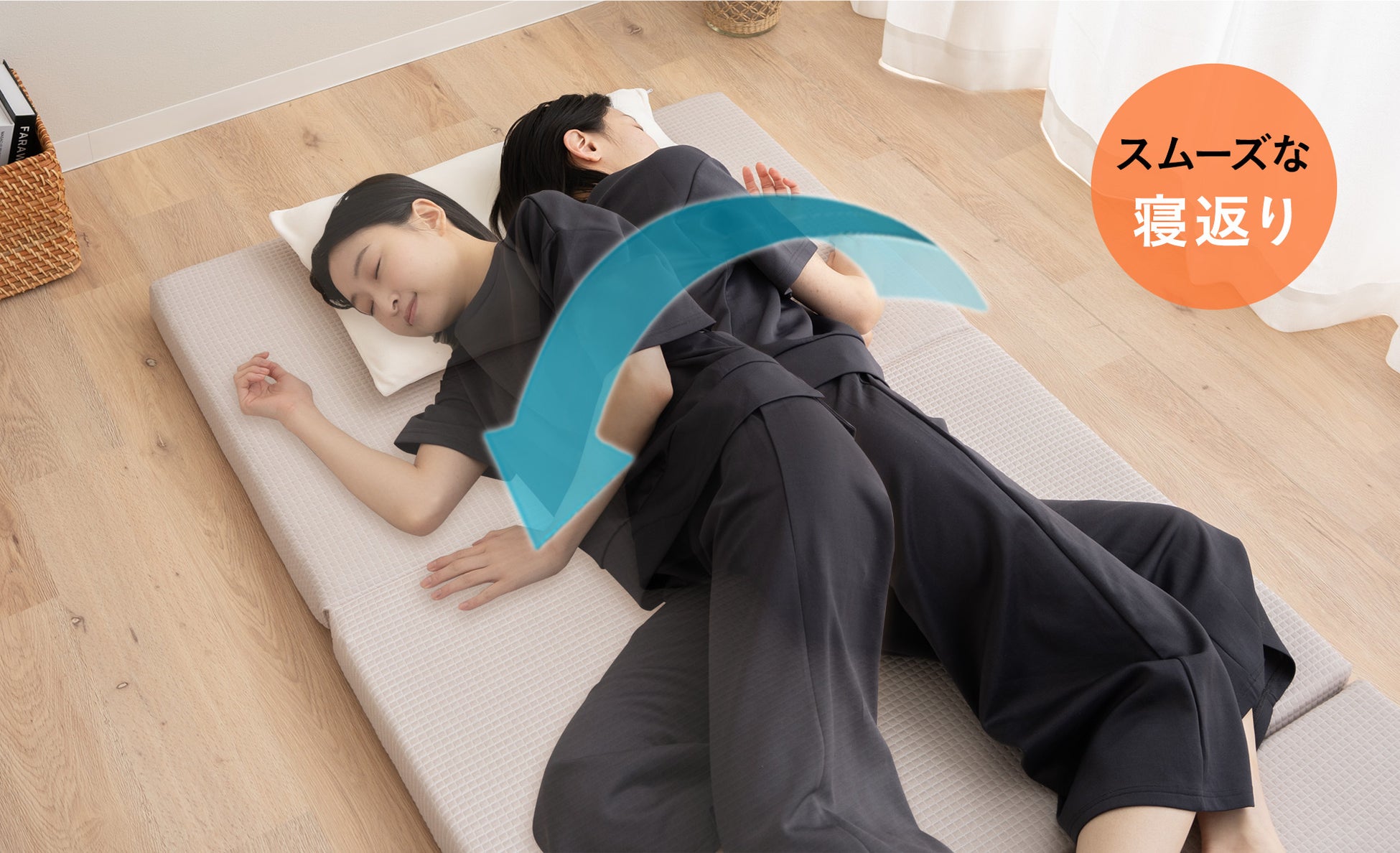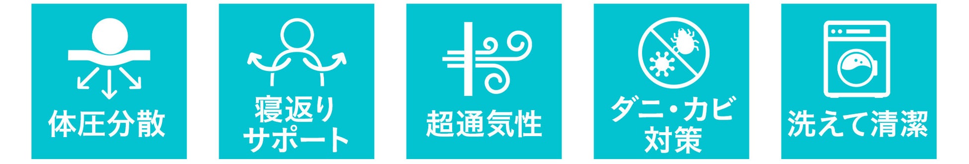 体圧分散性に優れた素材で、快適な眠りを支える「寝返り」をサポート。また、優れた通気性で清潔、そして季節に合った寝心地を提供します。
