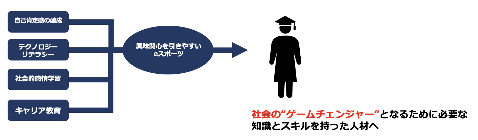 日本におけるeスポーツ活動を普及し、その活動を通じて若年層の優れた人格の形成とITスキルの向上を図り、
