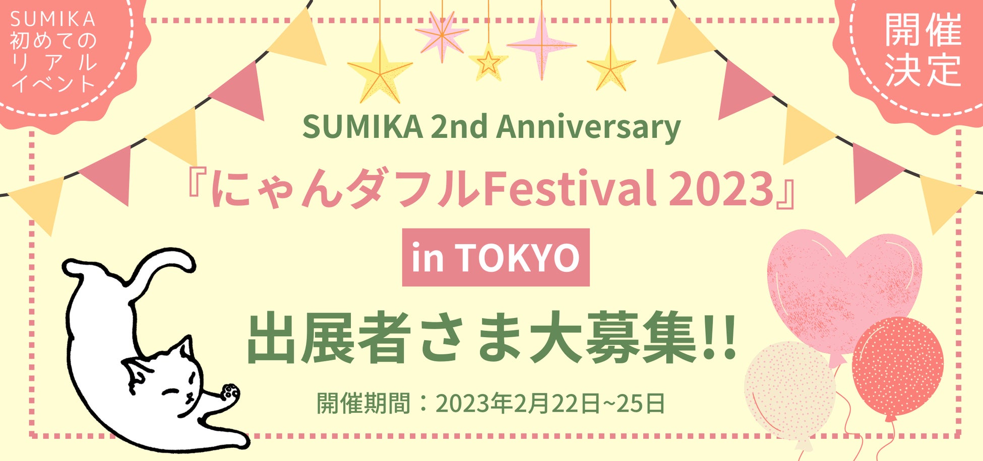 株式会社TIRAMISU(本社:東京都世田谷区 代表取締役:高澤 匡 以下「当社」)が運営する 猫ぐらしブランド「キミとワタシのSUMIKA」は2023年2月22日から2月25日の4日間に渡り「ii-Crossing」(東京都千代田区 飯田橋駅徒歩4分 路面店)にて、ブランド生誕2周年記念イベント、SUMIKA 2nd Anniversary『にゃんダフルFestival 2023』 in TOKYOを開催いたします。それに伴い、共に楽しくイベントを創り上げてくださるクリエイター様を募集いたします。