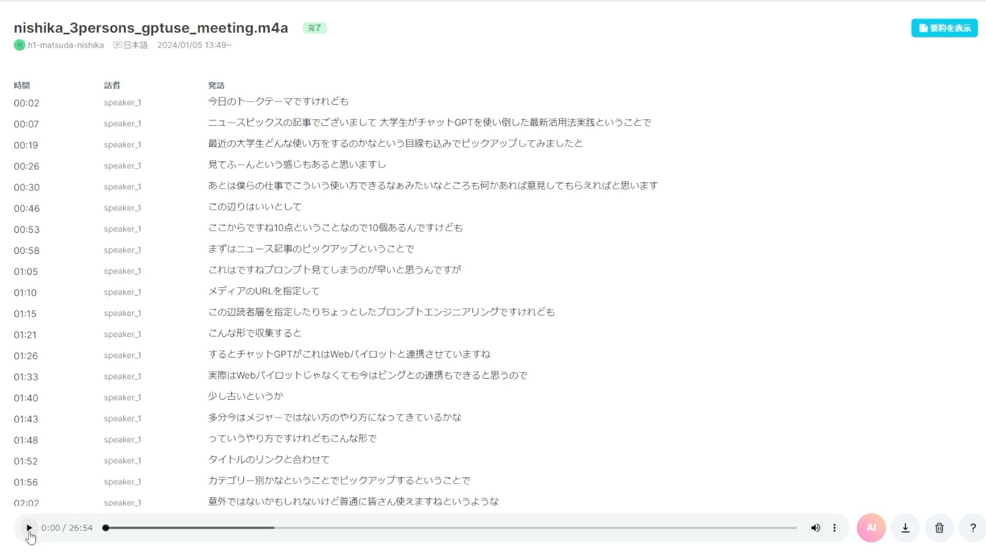 さらに、弊社にて独自に開発した、声紋登録を必要とせず、音声データのみから完全自動で話者特定を行うAIも搭載しています。