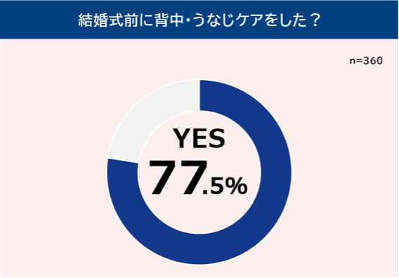- 結婚式前に背中・うなじケアをした人は77.5%