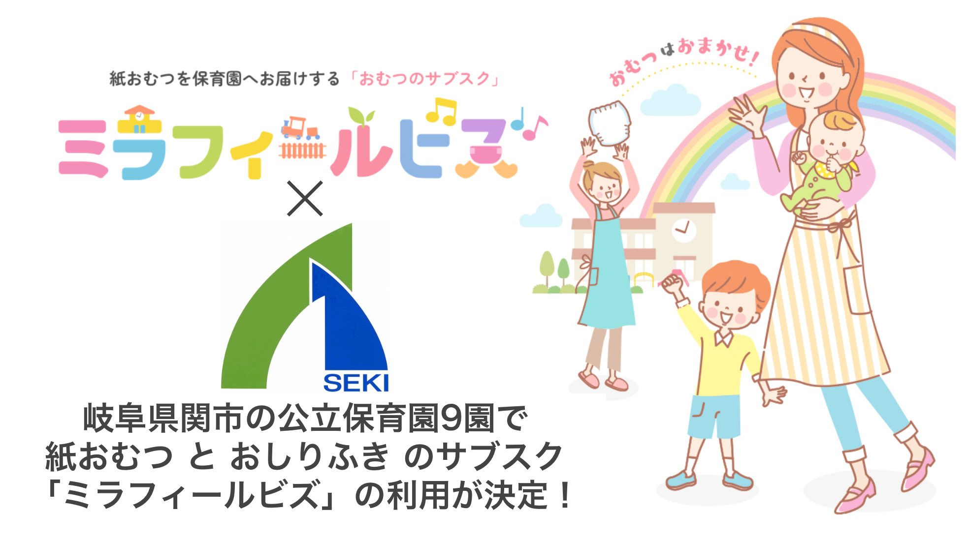 株式会社ブリッジウェル(本社:東京都江東区)は、2023年12月より岐阜県関市9保育園において、保育施設向け紙おむつのサブスク「おむつカンパニー(旧:ミラフィールビズ)」を正式に導入が開始されることをお知らせします。