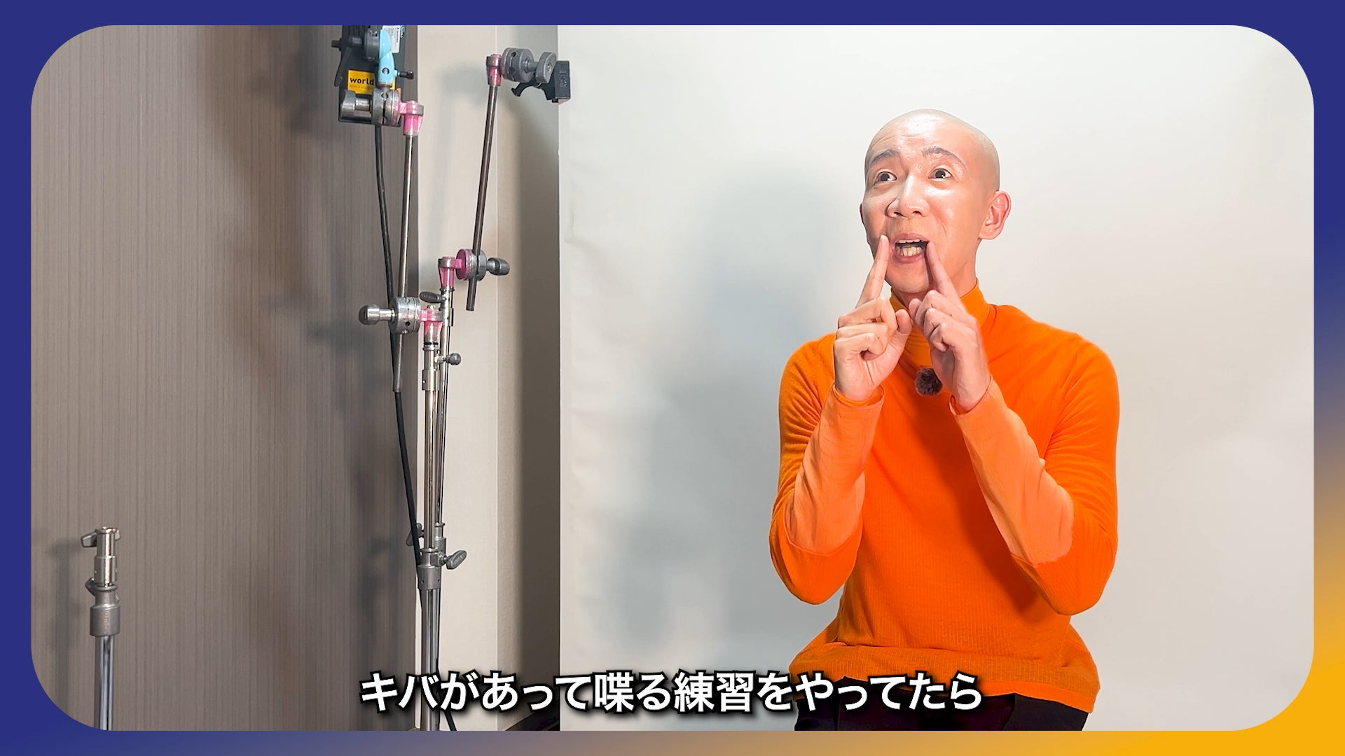 牙をつけたまま喋る練習をやってたら、そのまま、あごが…。一瞬だけ外れて…(笑)
