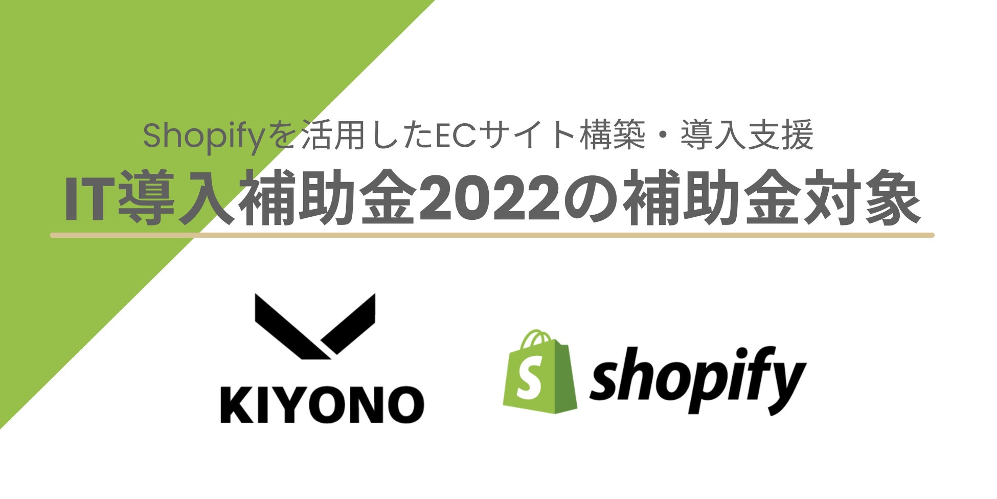 ShopifyのトップパートナーとしてShopify plus パートナーに認定されている株式会社KIYONO(本社:東京都渋谷区、代表取締役:清野賢一、以下KIYONO)は、「IT導入補助金2022」において、IT導入支援事業者に採択されました。補助金対象となるITツールとしてShopify(ショッピファイ)を活用したECサイト構築・導入支援が登録されました。これにより、中小企業・小規模事業者等が補助事業者に採択された場合に、ECサイト構築サービスにかかる導入費用の一部が補助されます。